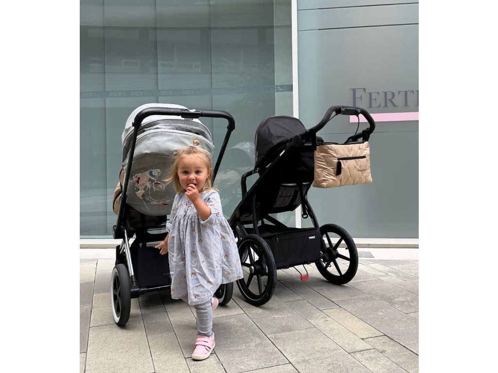 Vďaka nastaviteľným popruhom organizér jednoducho pripevníte na kočík. Popruhy je možné zopnúť a nosiť organizér aj cez rameno ako tašku.