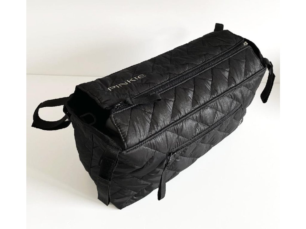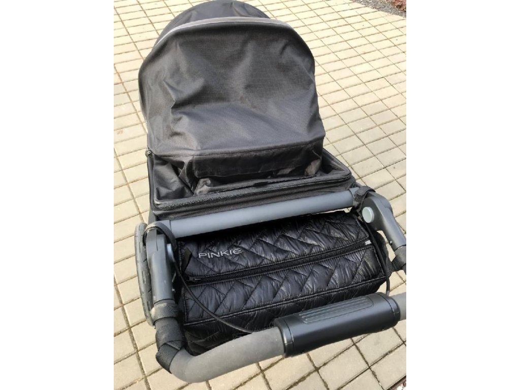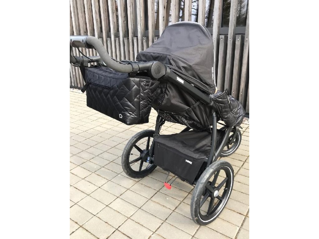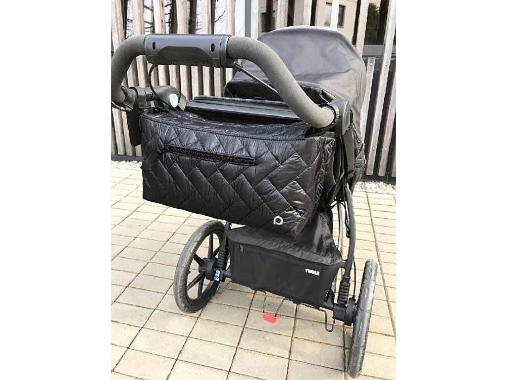Objemný organizér vytvorený na kočík Thule alebo jemu podobný. Jeho špecifickému madlu sme navrhli organizér, ktorý na mieru sedí a kopíruje tvar kočíka. Preto aj po sklopení sedačky do polohy v ľahu, organizér neprekáža, pretože má skosený tvar.Atraktívny materiál s efektným prešitím.