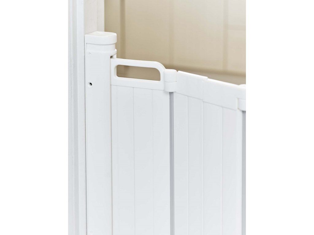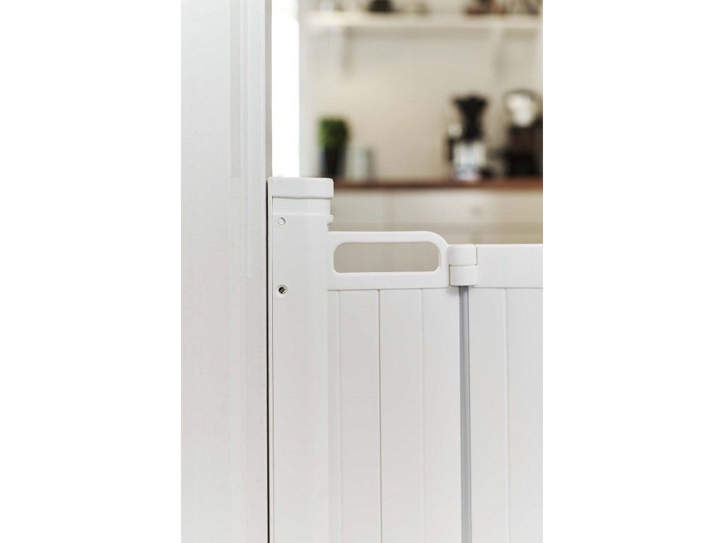 S bezpečnostnou zábranou BabyDan ALMA nebudú úzke priestory vo vašej domácnosti prekážkou pre udržanie bezpečia vášho dieťaťa. Jedná sa o zaťahovaciu bezpečnostnú zábranu, ktorá sa automaticky skladá, takže takmer nezaberá žiadne miesto. Môžete ju otvoriť iba jednou rukou, aby ste ju mohli prejsť aj keď máte plné ruky. Je vhodná takmer pre akýkoľvek otvor, pretože sa môže namontovať na vnútornú aj vonkajšiu stranu rámu dverí alebo aj medzi steny. Pokiaľ namontujete zábranu do rámu dverí, zmestí sa do otvoru 64,5 – 89 cm. Pokiaľ ju namontuje mimo rámu dverí, zmestí sa do otvoru 55 – 79,5 cm. Môžete si zakúpiť ďalšie predĺženie až do 113,5 cm veľkosti otvoru.