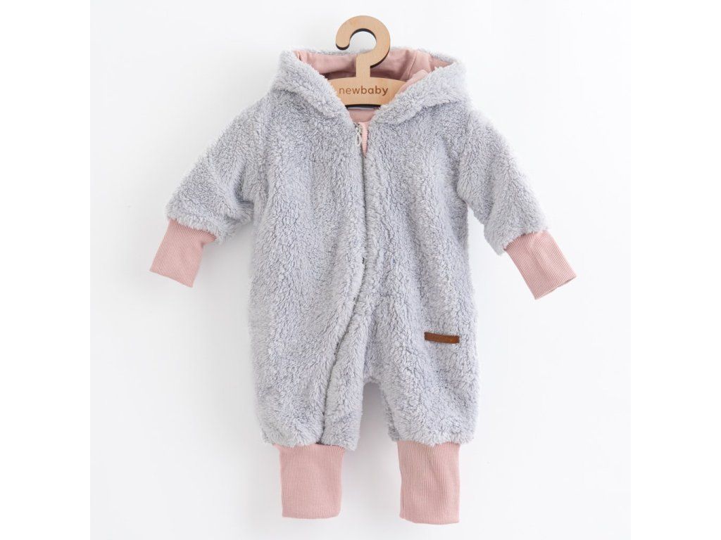 Luxusný detský zimný overal New Baby Teddy bear šedo ružový, 62 (3-6m) - 49178