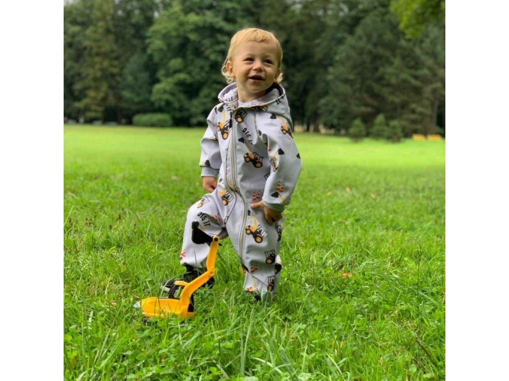 Nápaditý softshellový dojčenský overal New Baby. Overal je celopotlačený detským vzorom. Overal je vyrobený v Českej republike z kvalitného materiálu softshell. Materiál je hladký, elestický, mäkký a príjemný na dotyk. Do určitého stupňa je tiež vodeodolný, nenasakuje vodu a je odolný voči znečisteniu. Praktické zapínanie na zips po celej dĺžke veľmi uľahčí obliekanie a prebaľovanie. Zips je po celej dĺžke podšitý látkou, a tým je zamedzené prefukovaniu vetra na pokožku bábätka. Kombinéza má praktickú kapucňu, širšie pružné lemy na rukách a nohavičkách a celá vnútorná strana je zateplená nakrátko strihaným polarom, ktorý zvyšuje komfort nosenia a zaisťuje teplo. Na rukávoch sú našité reflexné paspulky. Softshellový overal je vhodný ako športové oblečenie, je odolný vetru a zároveň priedušný. Bábätko sa bude cítiť veľmi pohodlne a príjemne.Charakteristika softsellu: