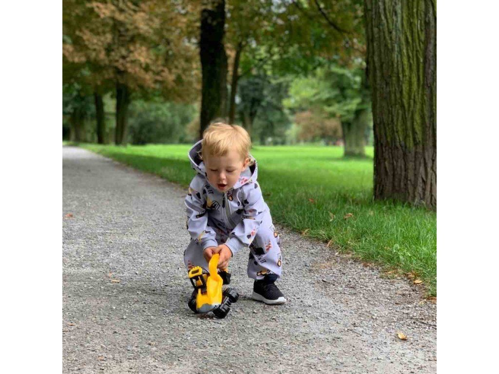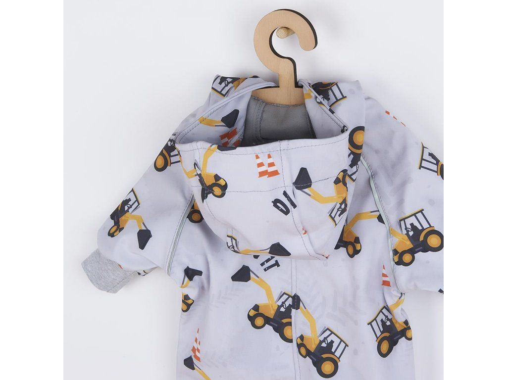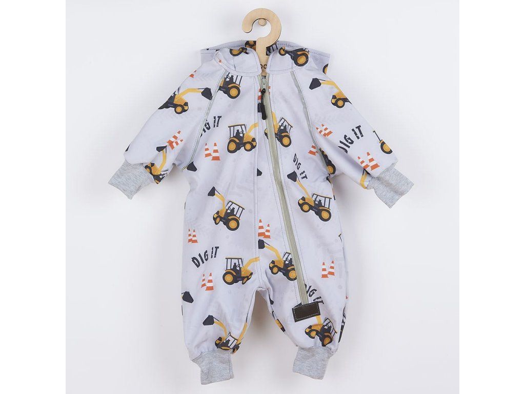 Nápaditý softshellový dojčenský overal New Baby. Overal je celopotlačený detským vzorom. Overal je vyrobený v Českej republike z kvalitného materiálu softshell. Materiál je hladký, elestický, mäkký a príjemný na dotyk. Do určitého stupňa je tiež vodeodolný, nenasakuje vodu a je odolný voči znečisteniu. Praktické zapínanie na zips po celej dĺžke veľmi uľahčí obliekanie a prebaľovanie. Zips je po celej dĺžke podšitý látkou, a tým je zamedzené prefukovaniu vetra na pokožku bábätka. Kombinéza má praktickú kapucňu, širšie pružné lemy na rukách a nohavičkách a celá vnútorná strana je zateplená nakrátko strihaným polarom, ktorý zvyšuje komfort nosenia a zaisťuje teplo. Na rukávoch sú našité reflexné paspulky. Softshellový overal je vhodný ako športové oblečenie, je odolný vetru a zároveň priedušný. Bábätko sa bude cítiť veľmi pohodlne a príjemne.Charakteristika softsellu: