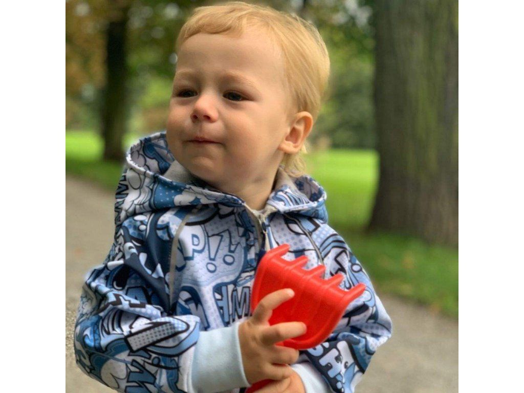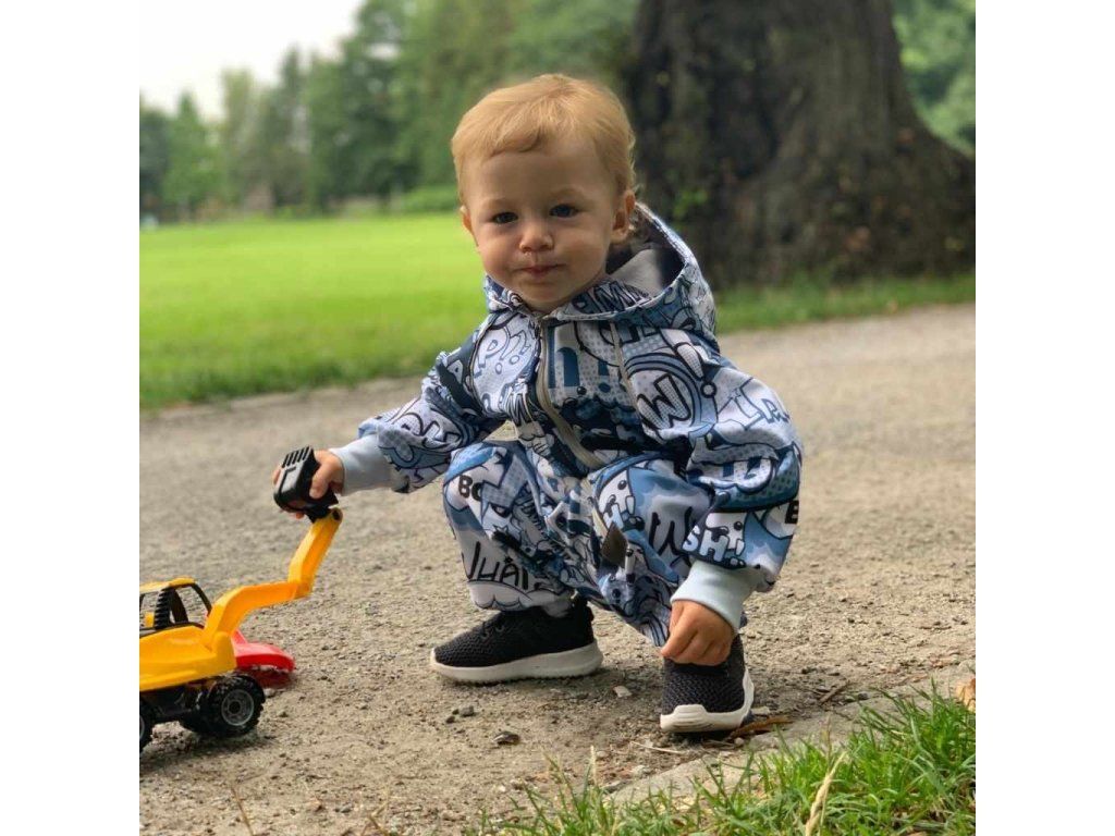 Nápaditý softshellový dojčenský overal New Baby. Overal je celopotlačený detským vzorom. Overal je vyrobený v Českej republike z kvalitného materiálu softshell. Materiál je hladký, elestický, mäkký a príjemný na dotyk. Do určitého stupňa je tiež vodeodolný, nenasakuje vodu a je odolný voči znečisteniu. Praktické zapínanie na zips po celej dĺžke veľmi uľahčí obliekanie a prebaľovanie. Zips je po celej dĺžke podšitý látkou, a tým je zamedzené prefukovaniu vetra na pokožku bábätka. Kombinéza má praktickú kapucňu, širšie pružné lemy na rukách a nohavičkách a celá vnútorná strana je zateplená nakrátko strihaným polarom, ktorý zvyšuje komfort nosenia a zaisťuje teplo. Na rukávoch sú našité reflexné paspulky. Softshellový overal je vhodný ako športové oblečenie, je odolný vetru a zároveň priedušný. Bábätko sa bude cítiť veľmi pohodlne a príjemne.Charakteristika softsellu: