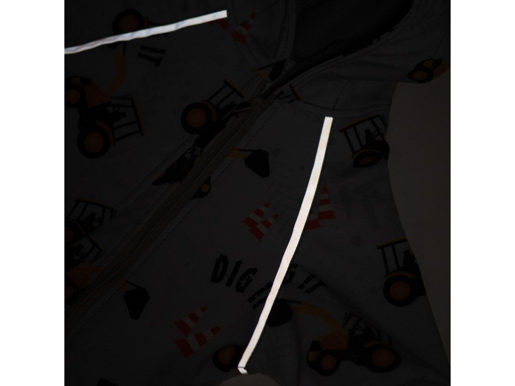 Nápaditý softshellový dojčenský overal New Baby. Overal je celopotlačený detským vzorom. Overal je vyrobený v Českej republike z kvalitného materiálu softshell. Materiál je hladký, elestický, mäkký a príjemný na dotyk. Do určitého stupňa je tiež vodeodolný, nenasakuje vodu a je odolný voči znečisteniu. Praktické zapínanie na zips po celej dĺžke veľmi uľahčí obliekanie a prebaľovanie. Zips je po celej dĺžke podšitý látkou, a tým je zamedzené prefukovaniu vetra na pokožku bábätka. Kombinéza má praktickú kapucňu, širšie pružné lemy na rukách a nohavičkách a celá vnútorná strana je zateplená nakrátko strihaným polarom, ktorý zvyšuje komfort nosenia a zaisťuje teplo. Na rukávoch sú našité reflexné paspulky. Softshellový overal je vhodný ako športové oblečenie, je odolný vetru a zároveň priedušný. Bábätko sa bude cítiť veľmi pohodlne a príjemne.Charakteristika softsellu: