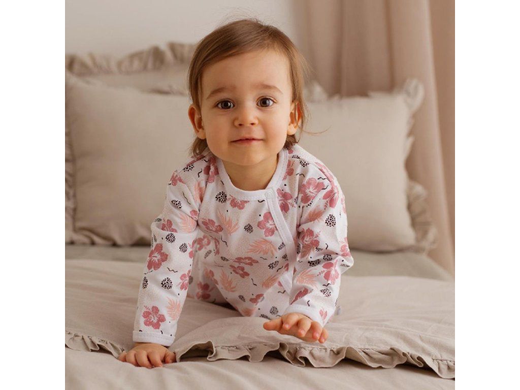 Štýlový dojčenský overal Koala Flowers. Overal je zdobený krásnou potlačou. Praktické bočné zapínanie na cvočky po celej dĺžke a medzi nožičkami veľmi uľahčí obliekanie a prebaľovanie. Overal je pre bábätká dôležitým kúskom oblečenia. Pri akomkoľvek pohybe je chrbátik bábätka stále prikrytý. Je vyrobený z veľmi príjemného a kvalitného materiálu, ktorý je veľmi dôležitý pre spokojnosť bábätka. Materiál: 100% bavlna.Dodatočné parametre