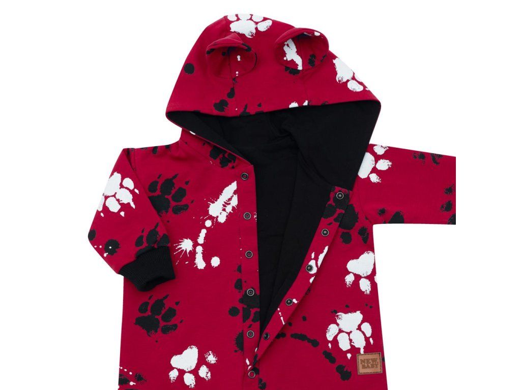 Nápaditý bavlnený dojčenský overal New Baby Paw. Overal je celopotlačený detským vzorom. Je vyrobený z kvalitného bavlneného materiálu s elastanom a bavlnenou podšívkou. Materiál je hladký a príjemný na dotyk. Praktické zapínanie na cvočky po celej dĺžke veľmi uľahčí obliekanie a prebaľovanie. Overal má praktickú kapucňu s uškami, širšie pružné lemy na rukách a nohavičkách a celá vnútorná strana je zateplená bavlnenou podšívkou, ktorá zvyšuje komfort nosenia. Bábätko sa bude cítiť v overale veľmi pohodlne a príjemne. Zloženie: 95% bavlna, 5% elastan, podšívka-95% bavlna, 5% elastan. Vhodné na jar a na jeseň.