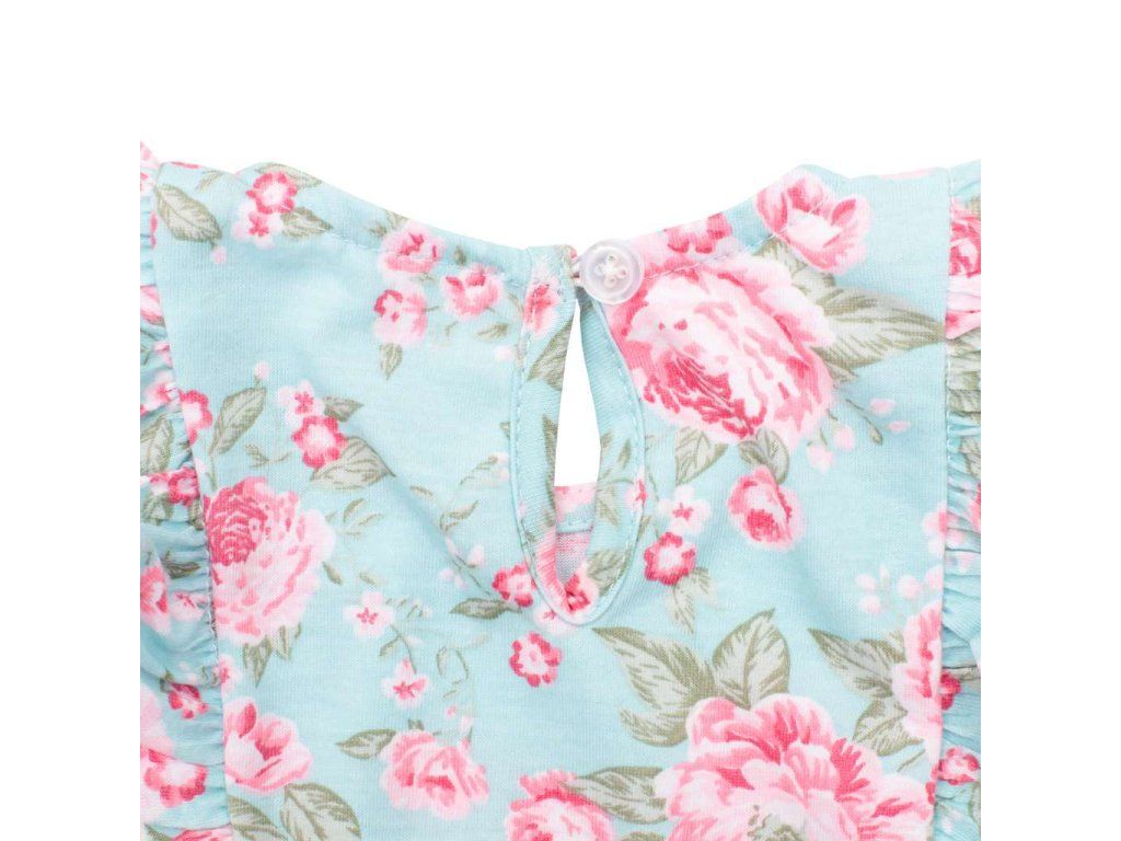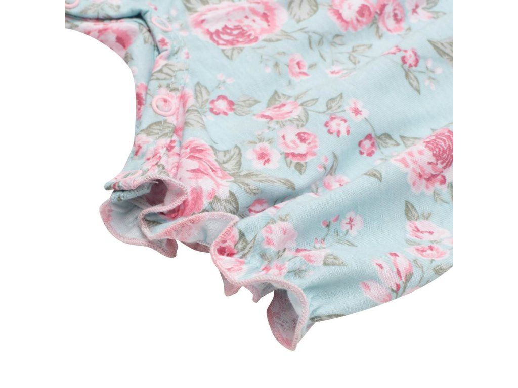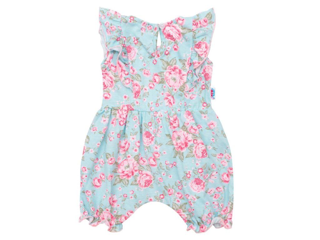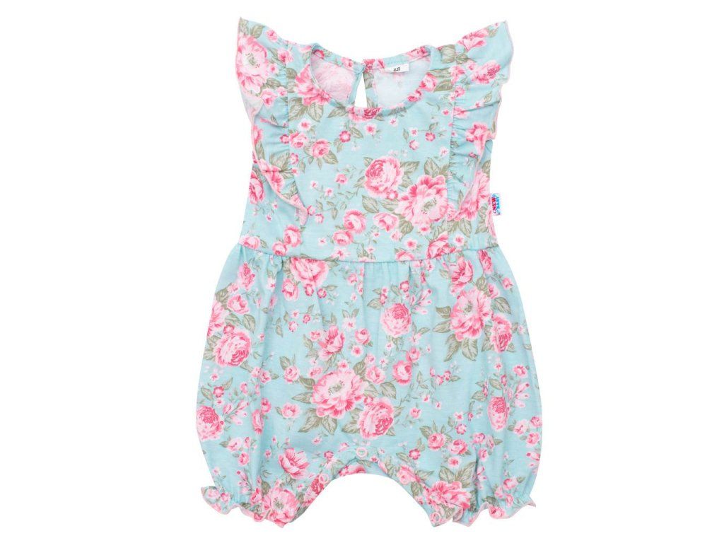Letný bavlnený overal s krátkym volánikovým rukávom New Baby Roses. Overal zdobí potlač nádherných ruží a roztomilé volánikové rukávky. Má praktické zapínanie na cvočky na ramienku a medzi nožičkami, čo uľahčí obliekanie a prebaľovanie. Pekný letný motív rozžiari všetky dievčatká. Zloženie: 100% bavlna.Dodatočné parametre