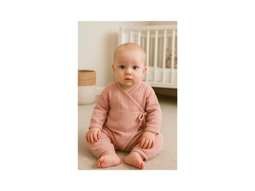 Dojčenský mušelínový overal New Baby pink, 80 (9-12m) - 58143