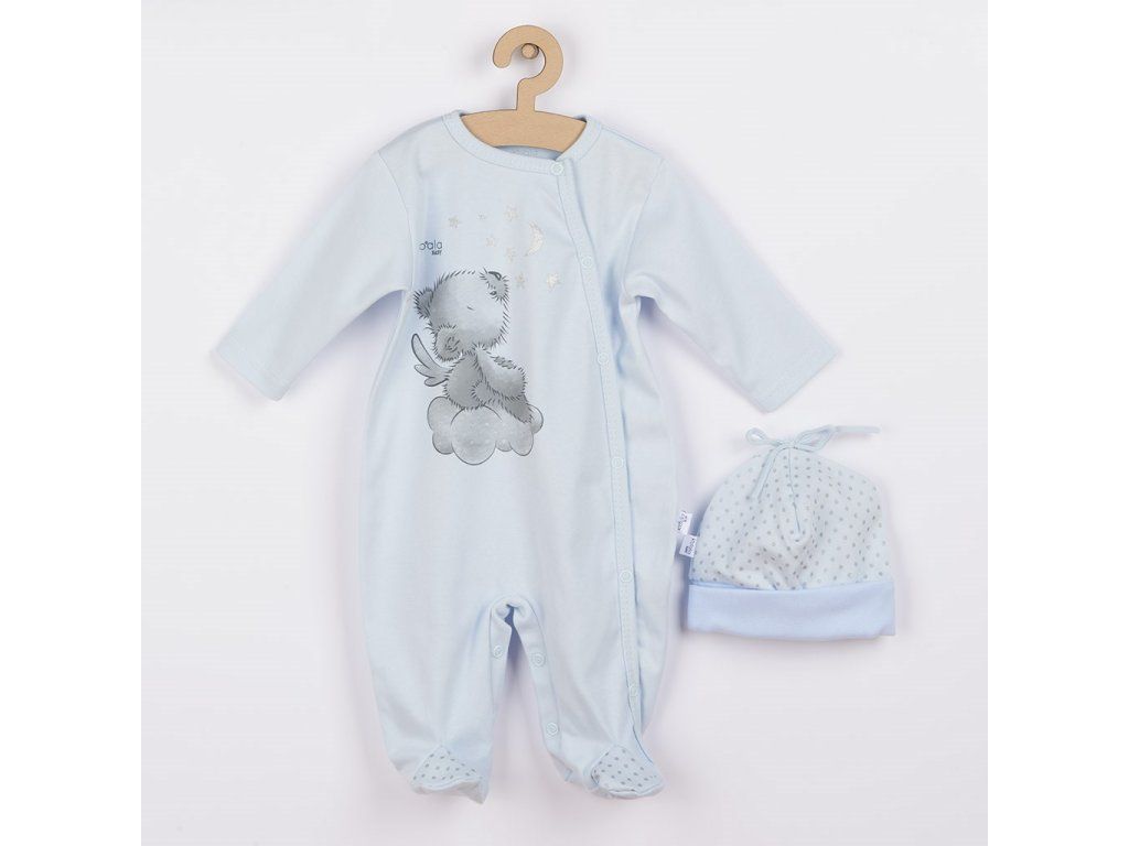 Očarujúci a jemný bavlnený dojčenský overal s čiapočkou Koala Angel. Overal má moderné bočné zapínanie na cvočky po celej dĺžke a medzi nožičkami. Je vhodný pre bábätká už od narodenia pre svoju jemnosť a mäkkosť. Overal je zdobený obrázkom medvedíka. Čiapočka so širším lemom krásne kryje ušká a je celopotlačená bodkami. Overal s čiapočkou je vyrobený z príjemného a kvalitného bavlneného materiálu, v ktorom sa bude Vaše bábätko cítiť príjemne. Zloženie: 100% bavlna.Dodatočné parametre