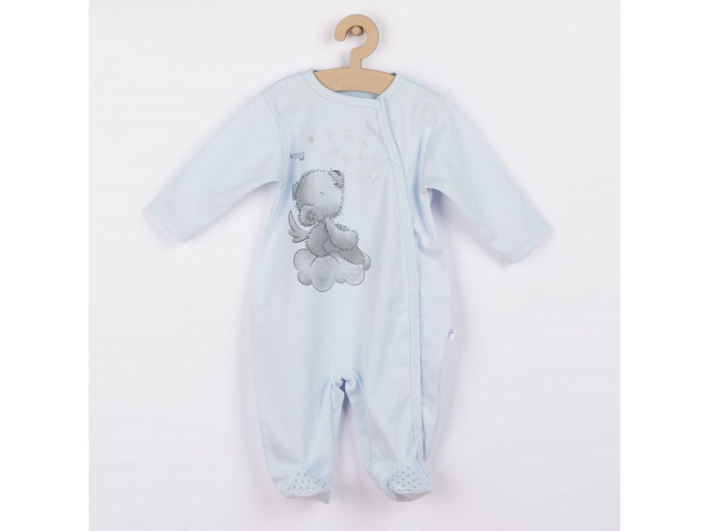 Očarujúci a jemný bavlnený dojčenský overal s čiapočkou Koala Angel. Overal má moderné bočné zapínanie na cvočky po celej dĺžke a medzi nožičkami. Je vhodný pre bábätká už od narodenia pre svoju jemnosť a mäkkosť. Overal je zdobený obrázkom medvedíka. Čiapočka so širším lemom krásne kryje ušká a je celopotlačená bodkami. Overal s čiapočkou je vyrobený z príjemného a kvalitného bavlneného materiálu, v ktorom sa bude Vaše bábätko cítiť príjemne. Zloženie: 100% bavlna.Dodatočné parametre