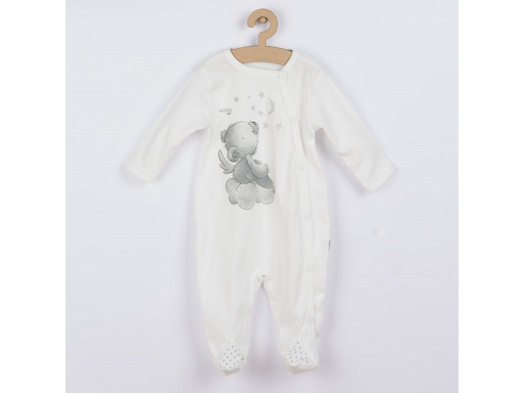 Očarujúci a jemný bavlnený dojčenský overal s čiapočkou Koala Angel. Overal má moderné bočné zapínanie na cvočky po celej dĺžke a medzi nožičkami. Je vhodný pre bábätká už od narodenia pre svoju jemnosť a mäkkosť. Overal je zdobený obrázkom medvedíka. Čiapočka so širším lemom krásne kryje ušká a je celopotlačená bodkami. Overal s čiapočkou je vyrobený z príjemného a kvalitného bavlneného materiálu, v ktorom sa bude Vaše bábätko cítiť príjemne. Zloženie: 100% bavlna.Dodatočné parametre