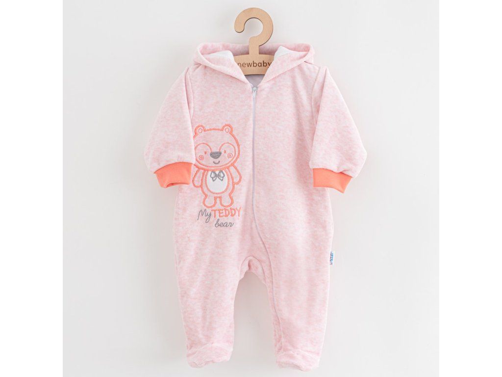 Dojčenský semiškový overal s kapucňou New Baby Sweetheart ružový, 62 (3-6m) - 45588