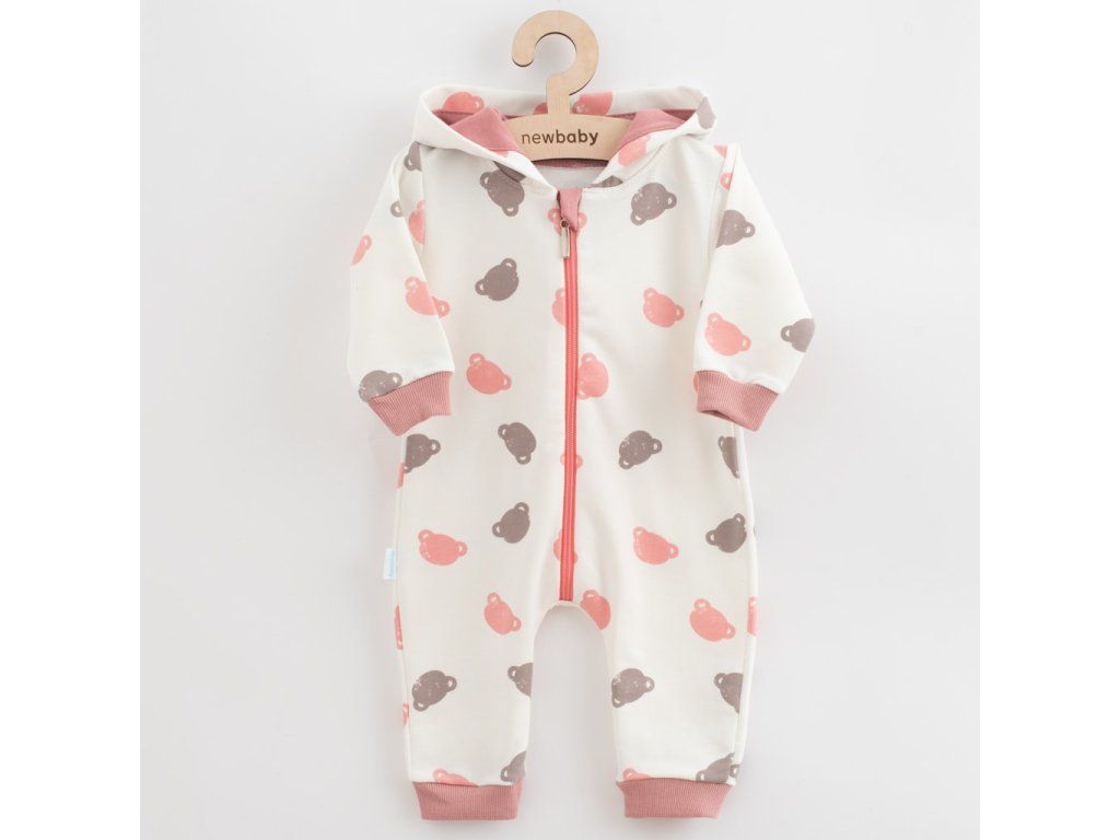 Roztomilý a praktický overal s kapucňou New Baby Little One. Overal je celopotlačený medvedíkmi, má zapínanie na zips po celej dĺžke a pružné lemy na rukávoch a nohavičkách. Kapucňa je podšitá farebnou podšívkou a je zdobená roztomilým brmbolcom. Overal je vyrobený z pohodlnej teplákoviny. Vhodný na celoročné nosenie. Materiál: 96% bavlna, 4% elastan.