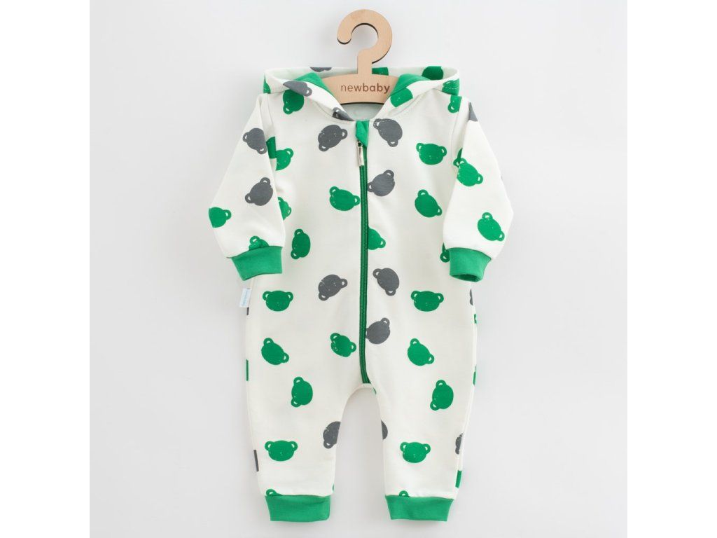 Roztomilý a praktický overal s kapucňou New Baby Little One. Overal je celopotlačený medvedíkmi, má zapínanie na zips po celej dĺžke a pružné lemy na rukávoch a nohavičkách. Kapucňa je podšitá farebnou podšívkou a je zdobená roztomilým brmbolcom. Overal je vyrobený z pohodlnej teplákoviny. Vhodný na celoročné nosenie. Materiál: 96% bavlna, 4% elastan.