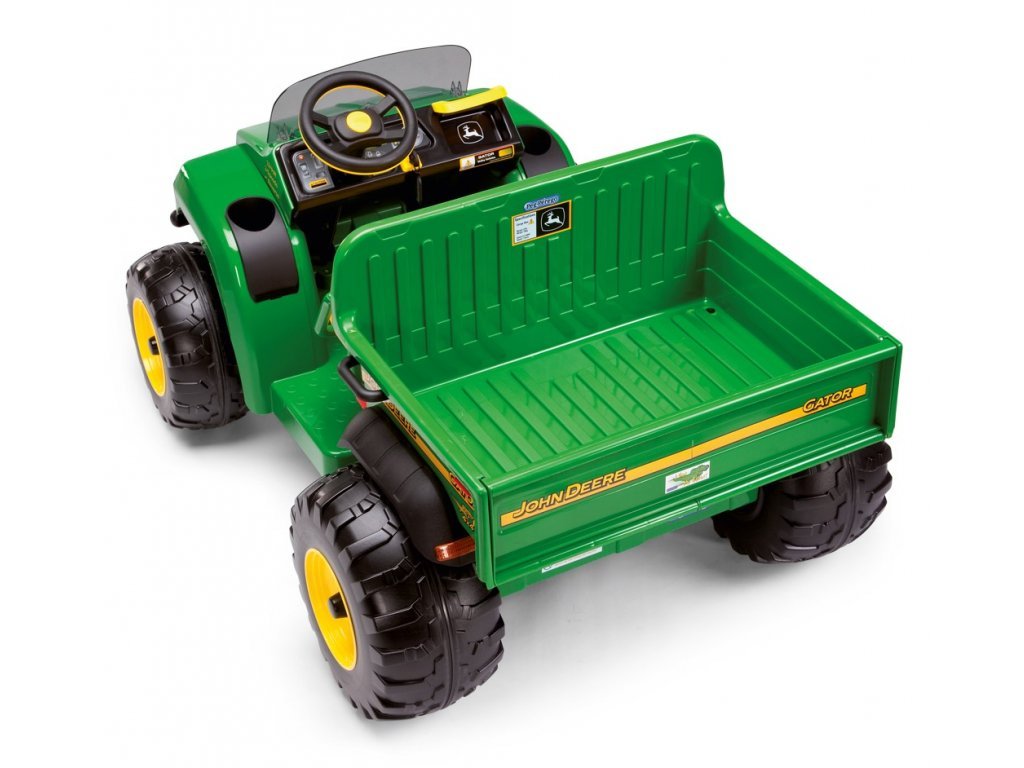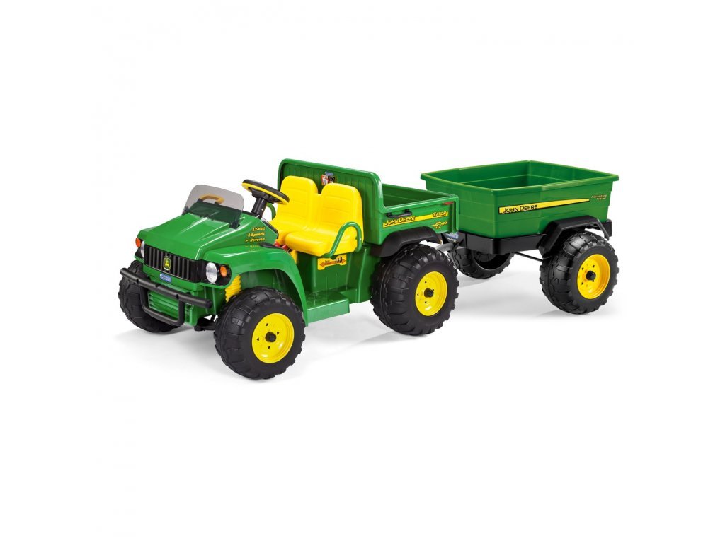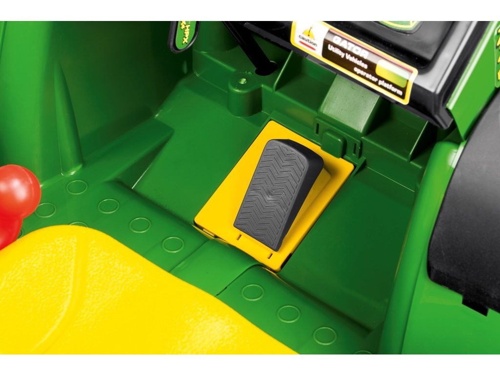 John Deere Gator HPX nie je obyčajné elektrické autíčko! Tento štýlový traktor s vyklápacou vlečkou má až 2 miesta na sedenie, takže radosť z jazdy môže byť až dvojnásobná. Svojim pekným zeleno-žltým prevedením, nastaviteľnými sedadlami, výkonnými kolesami prispôsobenými aj na nerovné a hrboľaté povrchy, prinesie kopu radosti vašim deťom, ktoré si obľúbia hlavne klaksón či vyklápaciu vlečku s nosnosťou až do 10 kg. Autíčko sa pohybuje smerom vpred položením nohy na nožný pedál maximálnou rýchlosťou 6,8 km/h a smerom vzad uvoľnením tohto pedálu max. rýchlosťou 3,5 km/h. Spiatočka a taktiež rýchlostné stupne sa nastavujú pomocou radiacej páky. Tak na čo čakať? Kúpte toto autíčko Vašim deťom, posaďte ich doňho a užite si spolu s nimi kopu zážitkov a radosti.