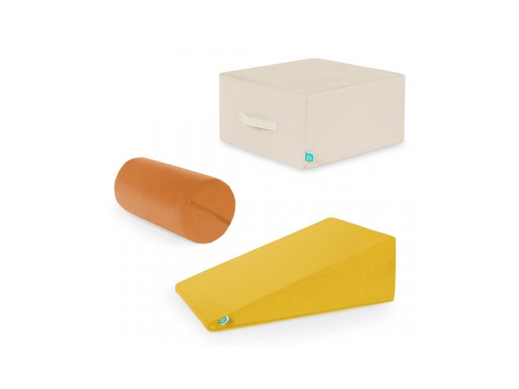 Rozmery: kocka 41 x 41 x 21 cm, rampa 61 x 41 x 21 cm, valec 41 x 21 x 21 cm