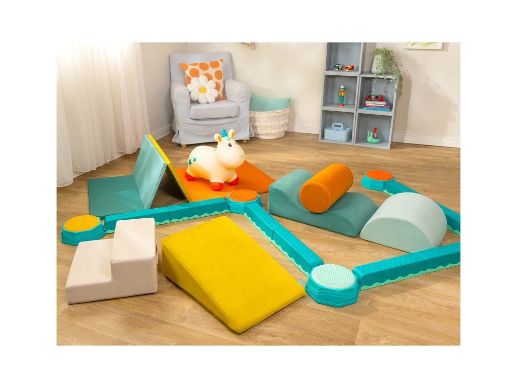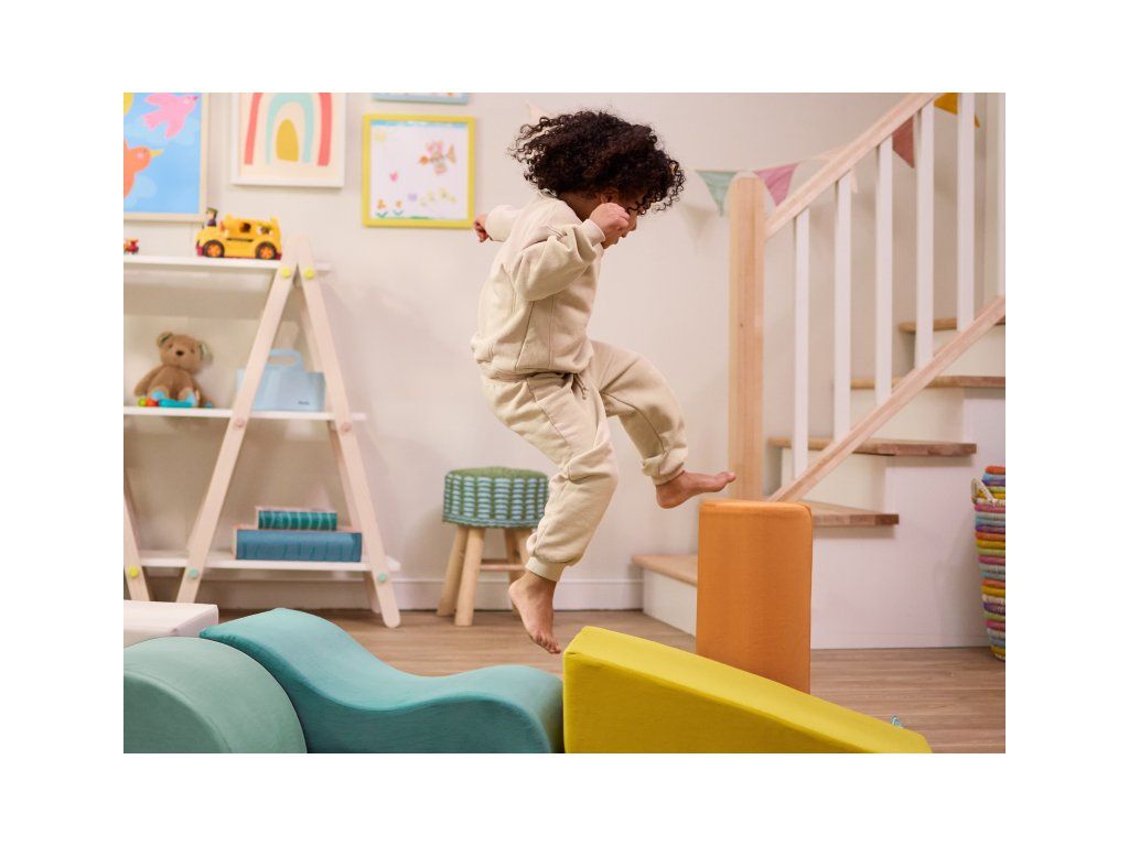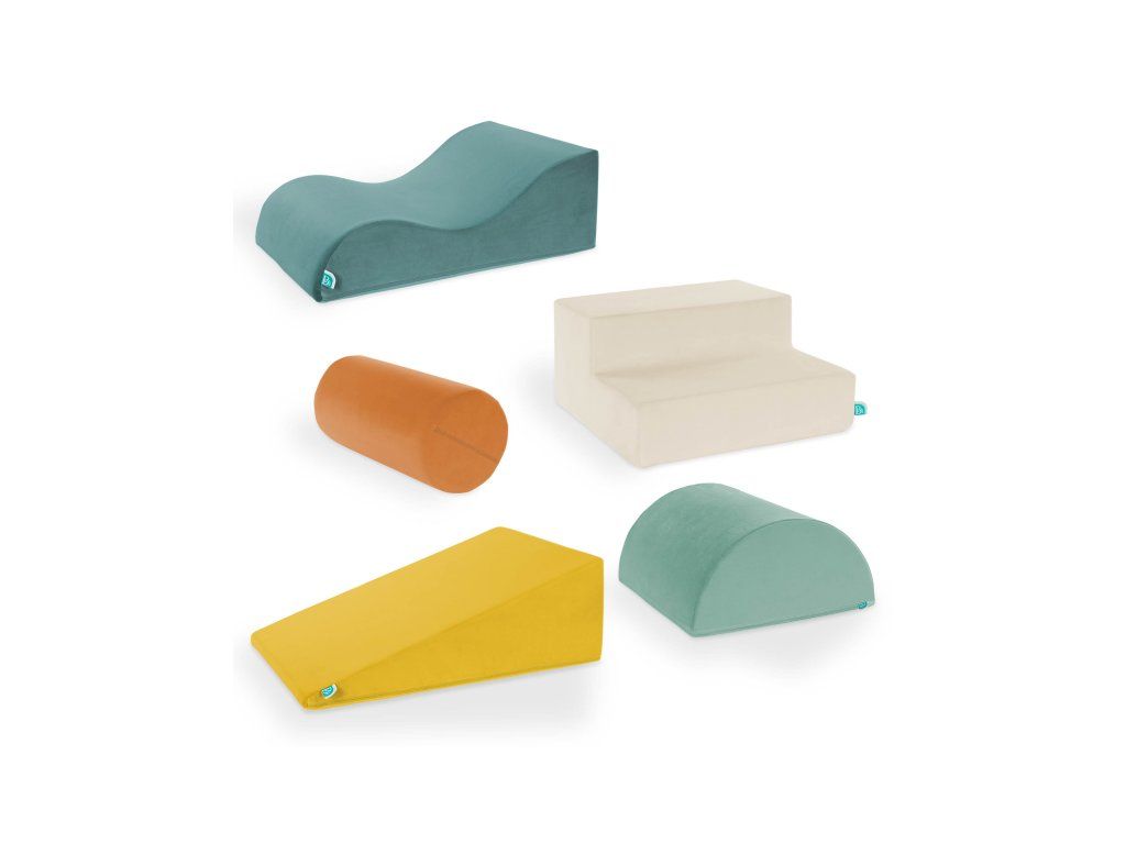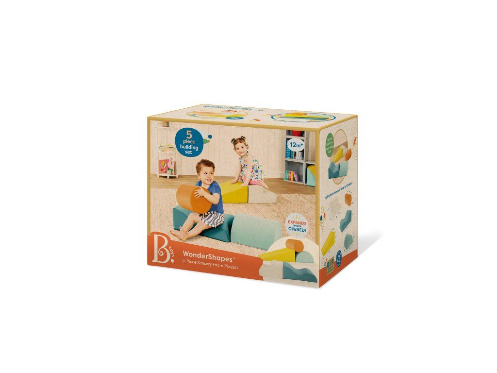 5-dielna sada penových tvarov WonderShapes premení každú detskú izbu alebo herňu na zábavné ihrisko plné fantázie. Obsahuje schod, rampu, valec, vlnitú rampu a polvalec – ideálny na tvorbu prekážkových dráh, preliezačiek aj kreatívnych stavieb. Po rozbalení sa jednotlivé diely samy roztiahnu do plnej veľkosti – ako kúzlom! Vďaka držadlám si deti môžu svoje ihrisko prestavovať podľa chuti, zatiaľ čo mäkké poťahy zaistia pohodlie aj bezpečnosť.
