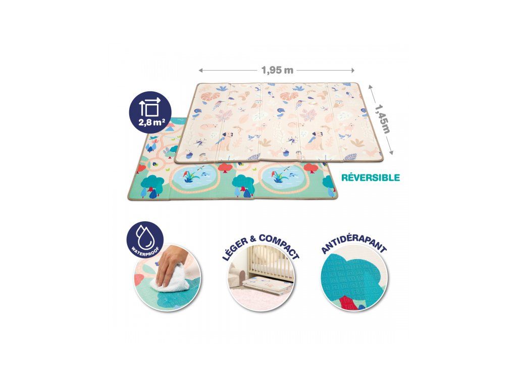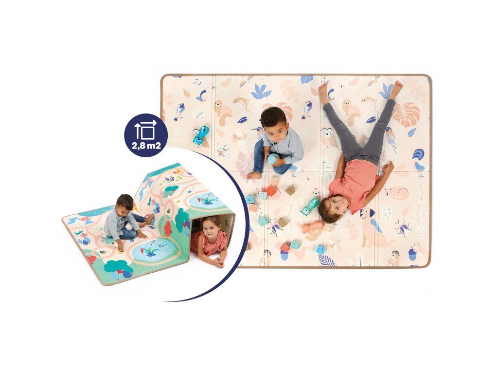 Veľká podložka pre malých aj väčších objaviteľov! Táto mäkká, skladacia a obojstranná hracia podložka ponúka priestrannú a bezpečnú plochu na hranie, lezenie, stavanie aj odpočinok. Je ideálny na podporu motoriky, kreativity a zmyslového vnímania – od batoliat po predškolákov.
