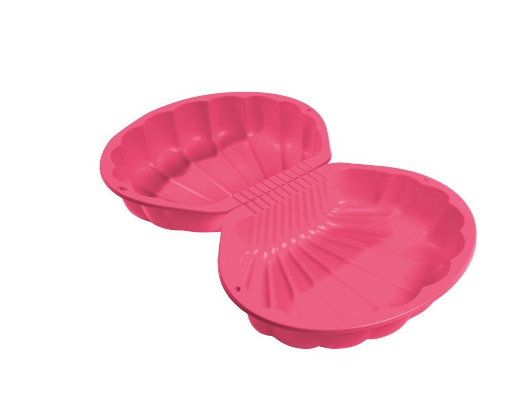 Pieskovisko a bazénik v jednom, zložené z 2 dielov s možnosťou uzavretia, z veľmi kvalitného a pevného plastu.Farba ružová. Kapacita pieskoviska 100 litrov. Pre piesok cca. 15 - 20 kg na jednu polovicu škrupiny a 40 litrov objem vody pre naplnenie do výšky asi 9 cm. Rozmery výrobku 88 x 73 x 22 cm. Hmotnosť 1,7 kg.Dodatočné parametre