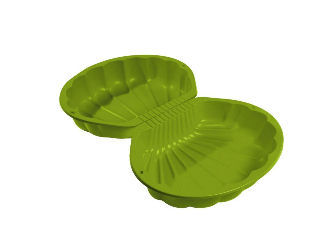 Pieskovisko a bazénik v jednom, zložené z 2 dielov s možnosťou uzavretia, z veľmi kvalitného a pevného plastu.Farba zelená. Kapacita pieskoviska 100 litrov. Pre piesok cca. 15 - 20 kg na jednu polovicu škrupiny a 40 litrov objem vody pre naplnenie do výšky asi 9 cm. Rozmery výrobku 88 x 73 x 22 cm. Hmotnosť 1,7 kg.Dodatočné parametre
