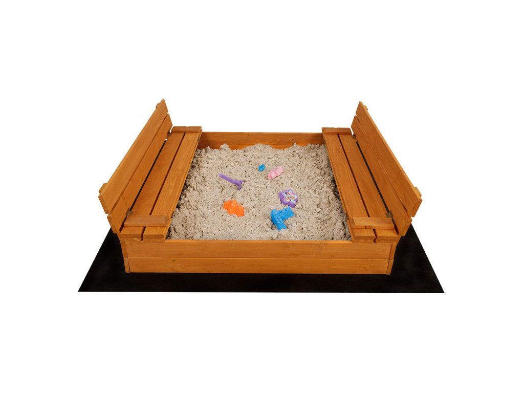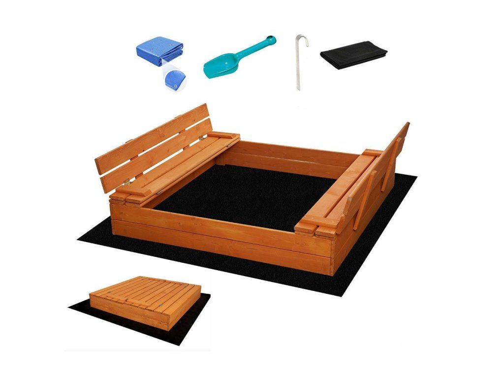 Detské drevené pieskovisko s poklopom a lavičkami Baby Mix 120x120 cm - 56167