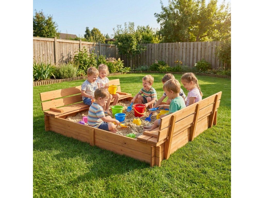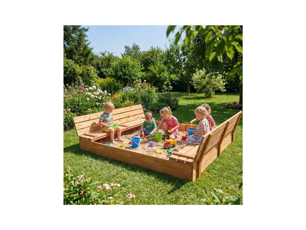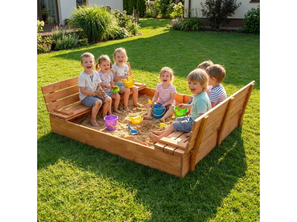 Detské drevené pieskovisko s poklopom a lavičkami Baby Mix 180x180 cm - 59489