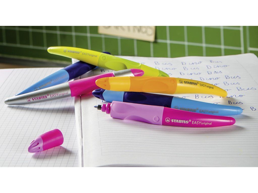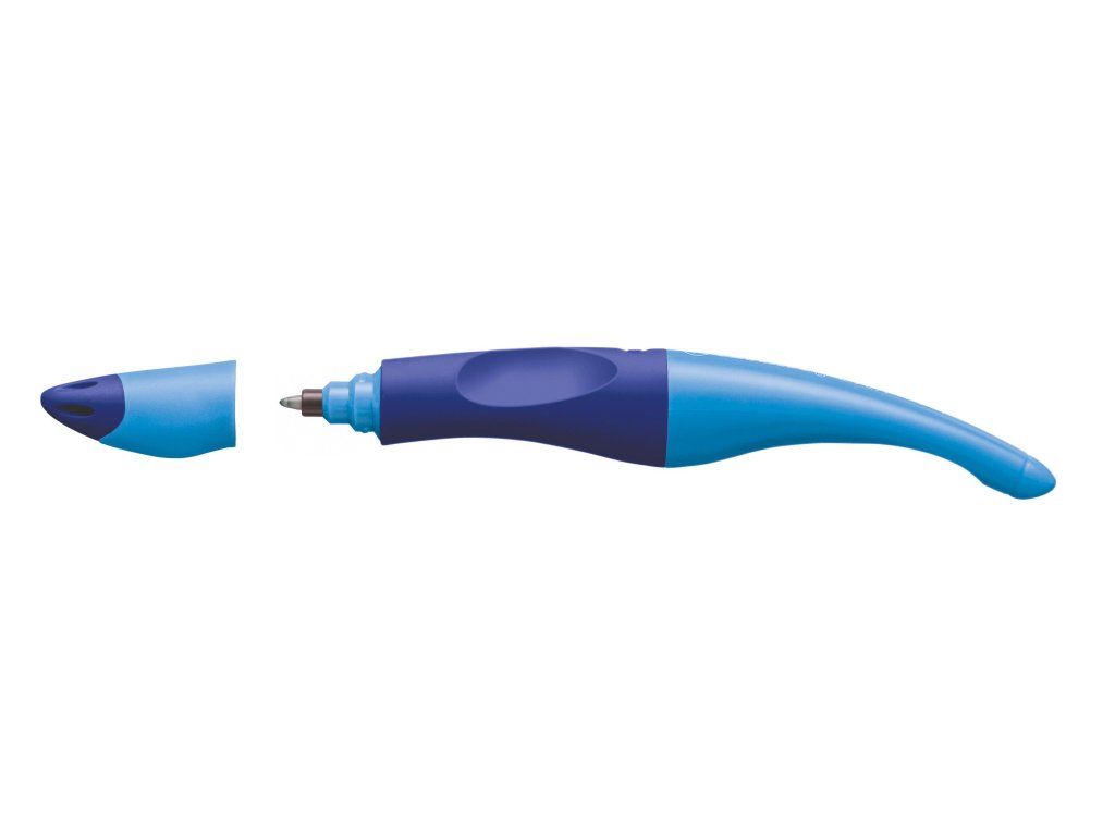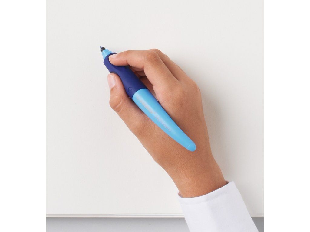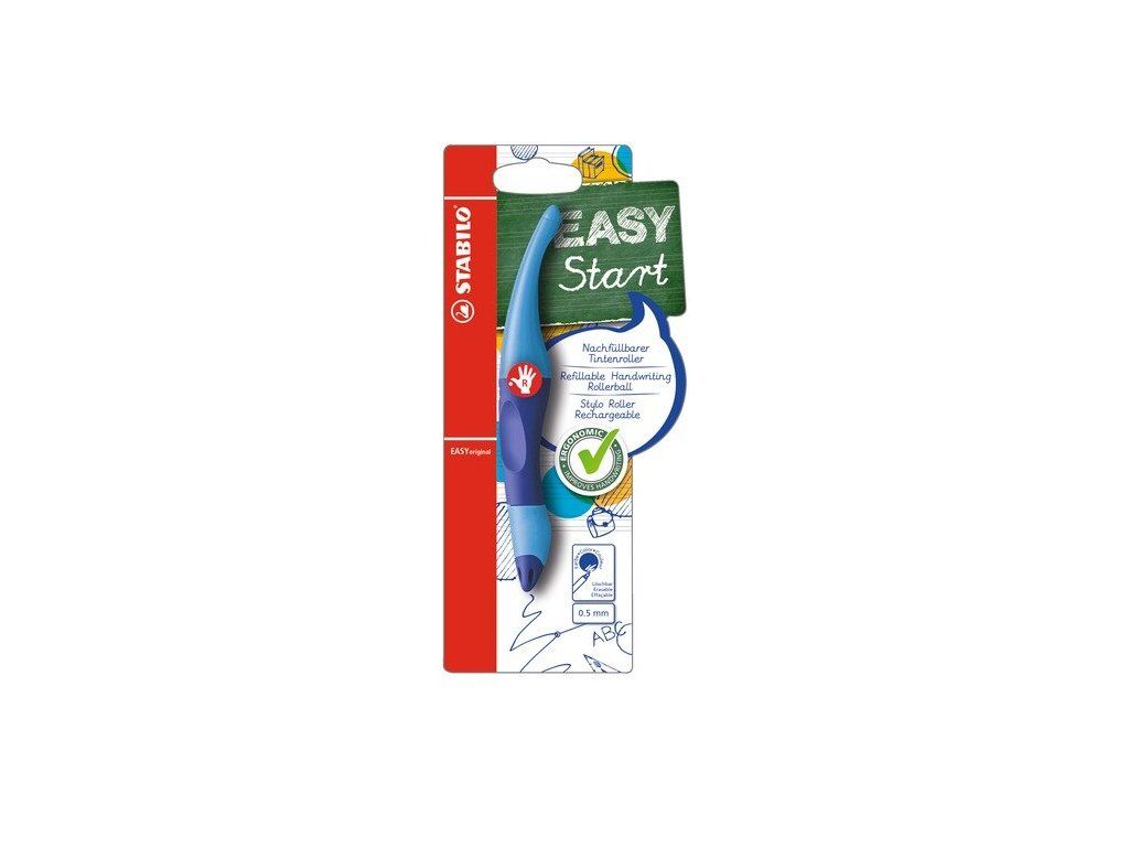 Ergonomické pero guľôčkové Modré pre pravákov Ergonomické pero pre pravákov STABILO roller Easyoriginal je ergonomické pero, ktoré svojim tvarom napomáha k správnemu úchopu a uvoľnenému držaniu.Zabudnite na bolesť v ruke pri písaní Ergonomický dizajn je určený zvlášť pre pravákov. Uvoľnené držanie pomáha proti únave svalstva ruky a následnej bolesti v ruke pri písaní. Ľahko kĺže po papieri, čisté písanie bez machúľ. Povrch pera je pogumovaný a gélový atrament je zmizíkovateľný. Roller obsahuje aj štítok na meno. Vymeniteľná náplň. Farba pera: modrá. Náplň: modrá.Dodatočné parametre