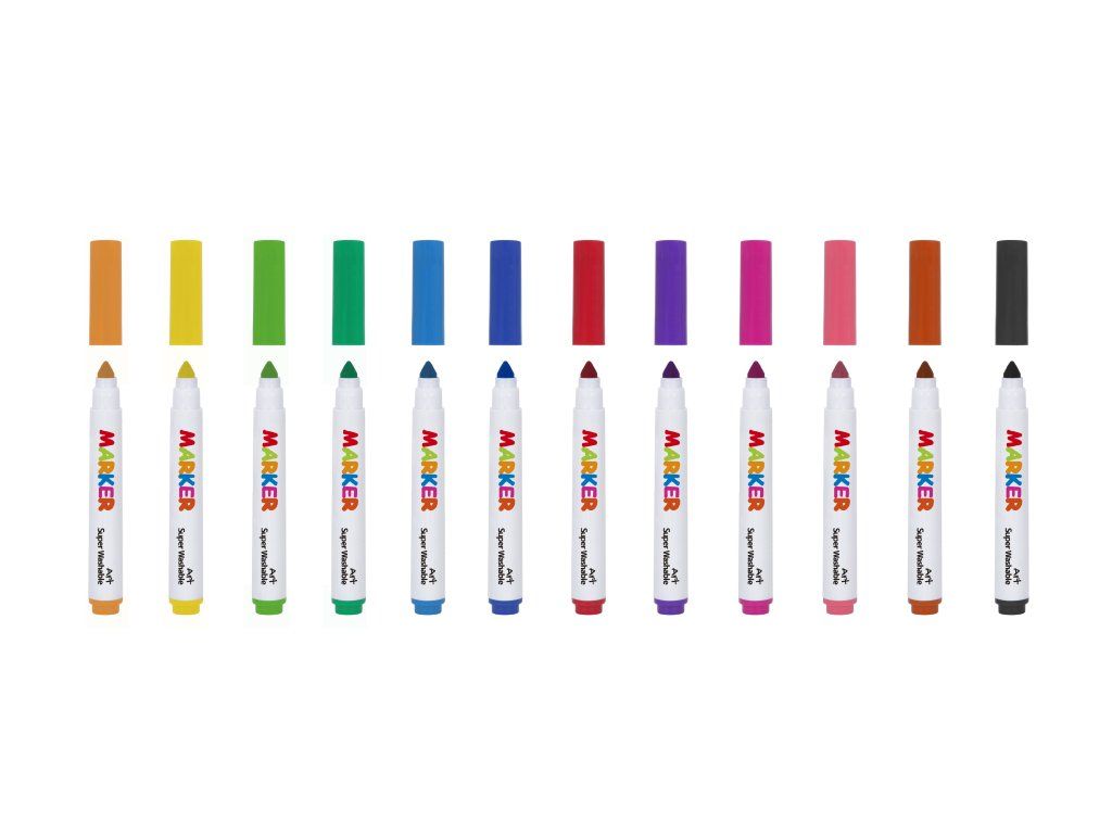 Fixky Umývateľné s univerzálnym hrotom 12 ks Ideálne fixy pre menšie deti Zmývateľné fixky pre deti od Tookyland majú 12 nádherných sýtych farieb a deťom sa s nimi bude krásne kresliť. Hrot má kužeľovitý tvar, vďaka ktorému je možné kresliť hrubé aj tenké čiary. Kreslenie tak deti hneď viac baví a motivuje ich k ďalšej kreatívnej činnosti.Farby sú netoxické a zmývateľné Veľkosť zmývateľných fixiek pre deti je prispôsobená na držanie v malých detských rukách. Okrem toho nemusíte ani mať obavu, že narobia neporiadok. Farby sa dajú umyť z ručičiek, vyprať z trička alebo utrieť zo stola. Fixy pre deti sú uložené v praktickom valcovitom boxe, ktorý si deti vezmú ľahko všade so sebou a po kreslení doň všetky fixky opäť upratajú.Dodatočné parametre