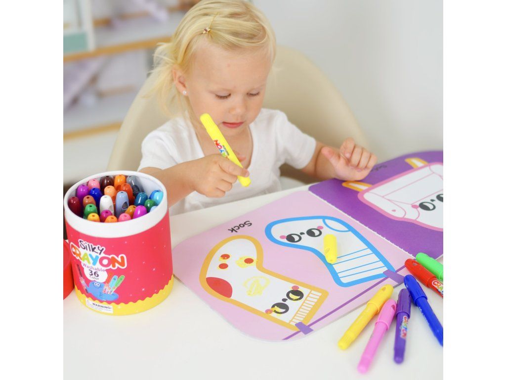 Jemné voskovky Umývateľné 24 ks Kreslite, tvorte a zabávajte sa – s voskovkami, ktoré milujú deti aj rodičia! Rozžiarte svet svojho dieťatka farbami! Naše jemné umývateľné voskovky v praktickom balení 24 kusov prinesú nekonečné možnosti kreatívneho vyžitia – na papieri, ale aj na tvári či tele. Bez tlačenia, bez špiny, iba čistá radosť z tvorenia!Prečo si vaše deti zamilujú práve tieto voskovky? Ľahké ako pierko – voskovky sa krásne rozotierajú už pri jemnom dotyku, čo ocení každá detská rúčka.Umývateľné a nezanechávajú škvrny – jednoducho sa dajú zmyť z pokožky aj oblečenia.Bezpečné zloženie – voskovky sú vyrobené z glycerínu a sú zdravotne nezávadné. Ideálne aj na maľovanie na tvár.Praktické puzdro a vysúvací obal – voskovky sa nelámu, sú vždy poruke a ľahko sa uchovávajú.Podporujú rozvoj jemnej motoriky a fantázie – každá čiarka pomáha dieťaťu rásť hravo a tvorivo.24 žiarivých farieb v jednom boxe – aby bolo každé umelecké dielo plné života a radosti.Dodatočné parametre