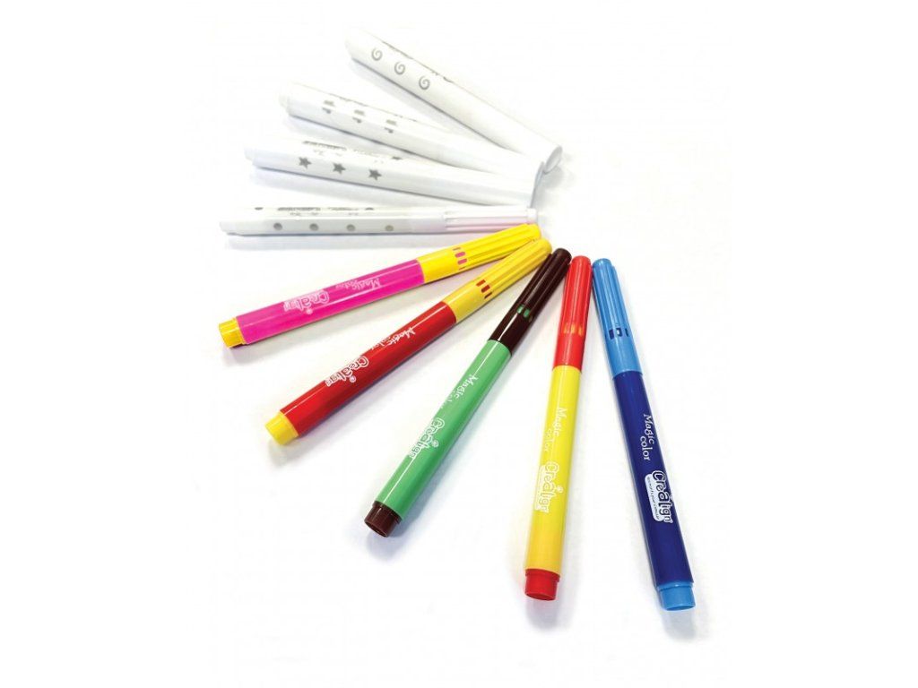 Dieťa si najprv vymaľuje 6 obrázkov pomocou 6 farebných fixiek a potom pridá efekty cez 3 magické blendery – špeciálne fixky so vzormi a „kúzelným“ atramentom, ktoré na farbe vytvárajú zaujímavé prechody a dekorácie.