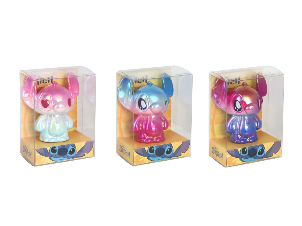 Strúhadlo Stitch Veselý a farebný doplnok do peračníka Tento roztomilý a praktický doplnok do školskej tašky prináša zábavu do každodenného života. Strúhadlo v tvare obľúbeného mimozemského zvieratka Stitcha z Disneyho príbehu je ideálnym nástrojom pre deti, ktoré milujú rozprávkové motívy. Strúhadlo je vybavené živými gradientovými farbami a má kompaktný tvar, ktorý sa pohodlne zmestí do peračníka. Je to skvelý doplnok do kolekcie rozprávkových školských potrieb Disney Stitch. Perfektné na používanie doma, v škole alebo ako darček pre každého malého fanúšika Stitcha. K dispozícii sú 3 rôzne vzory, z ktorých bude náhodne vybraný jeden.Dodatočné parametre