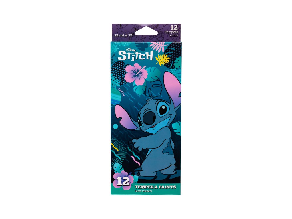 Temperové farby Stitch Blue 12 ks Ideálne na detské projekty Ponorte sa do sveta farieb s temperovými farbami Stitch Blue, ktoré sú inšpirované obľúbeným príbehom Disney o roztomilom mimozemskom zvieratku. Súprava obsahuje 12 farieb s vysokým obsahom pigmentu, ktoré zaručujú sýte a žiarivé odtiene. Farby sú rýchloschnúce, čo znamená, že vaše umelecké diela budú hotové za chvíľu. Tieto tempery sa výborne priľnú k povrchu a sú ľahko riediteľné vodou, čo zaručuje flexibilitu pri maľovaní. Každá tuba má praktický skrutkovací uzáver, ktorý zabraňuje vyschnutiu farby, čím predlžuje jej životnosť. Sú netoxické a bezpečné pre deti, takže sú ideálne na tvorenie doma aj v škole.Dodatočné parametre