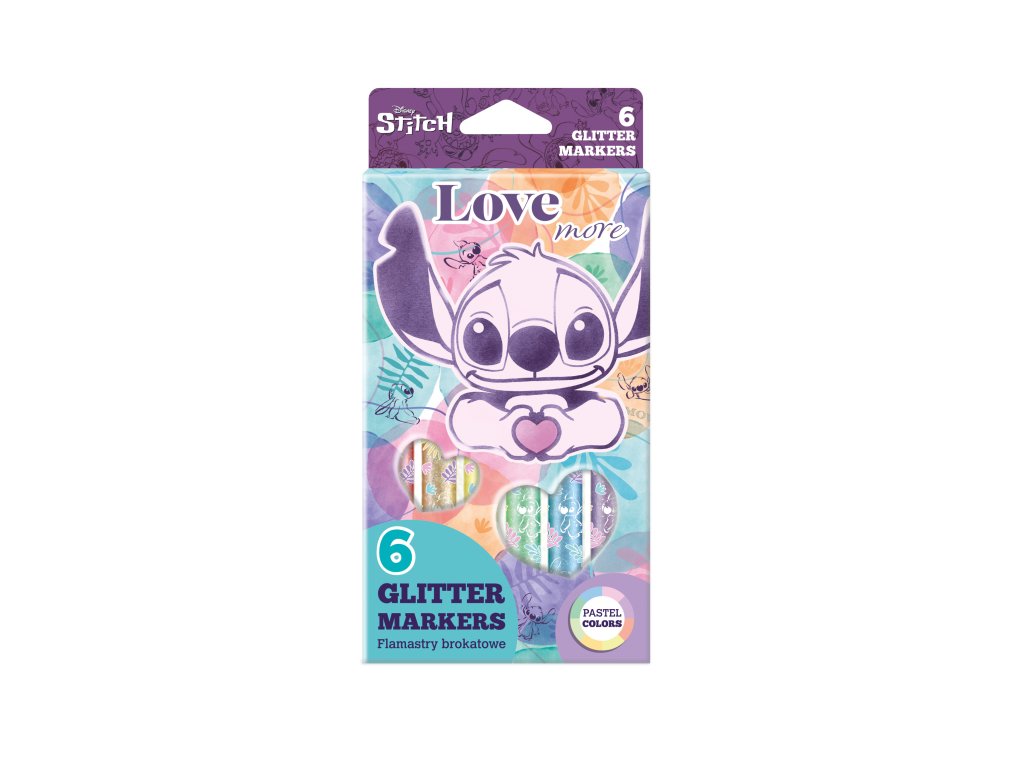 Trblietavé fixky Stitch Pastel 6 ks Pastelové fixky s trblietkami pre detskú fantáziu Dodaj svojim výtvorom nádych kúzla s trblietavými fixkami Stitch Pastel! Sada 6 krásnych pastelových odtieňov s jemnými trblietkami je ideálna na dekorovanie, písanie aj kreslenie. Vďaka mäkkej špičke sa s nimi jednoducho pracuje, či už ide o školské poznámky, pohľadnice alebo vlastnoručne vyrobené darčeky. Vytvor si vlastný žiarivý svet plný farieb, ktorý rozžiari každú stránku!Dodatočné parametre