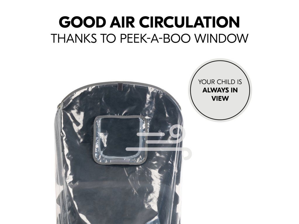 ĽAHKÉ VSTUPOVANIE DÍKY VEĽKÉMU ZIPOVÉMU OKIENKU // Keď vaše dieťa potrebuje nastúpiť alebo vystúpiť z kočíka, môžete prednú časť pláštenky ľahko otvoriť pomocou zipsu.