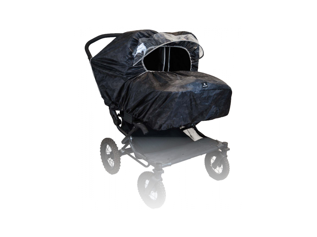 Univerzální pláštěnka na kočárek pro dvojčata je praktická ochrana proti dešti a větru. Průhledná přední clona chrání děti a zároveň nechává dovnitř kočárku proudit světlo a umožňuje výhled z kočárku. Velký přední otvor zajišťuje příjemné větrání. Pláštěnka má boční zip, díky kterému ji snadno otevřete a rychle sundáte i mokrou, a to s minimálním hlukem. Pro bezpečnější pohyb za šera je doplněná reflexními prvky. Po použití ji snadno složíte do integrované kapsy.
