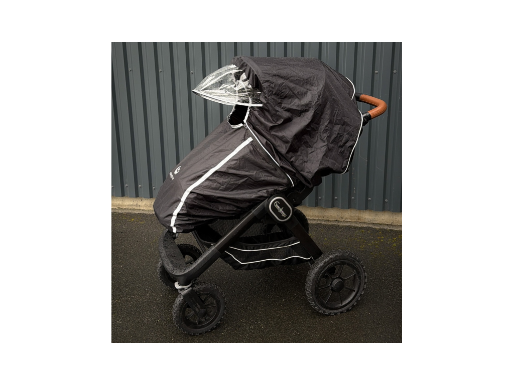 Univerzální pláštěnka na kočárek je praktická ochrana proti dešti a větru, vhodná na většinu typů kočárků. Průhledná přední clona chrání dítě a zároveň nechává dovnitř kočárku proudit světlo a umožňuje výhled z kočárku. Velký přední otvor zajišťuje příjemné proudění vzduchu. Pláštěnka má boční zip, díky kterému ji snadno otevřete a rychle sundáte i mokrou, a to s minimálním hlukem. Pro bezpečnější pohyb za šera je doplněná reflexními prvky. Po použití ji snadno složíte do integrované kapsy.