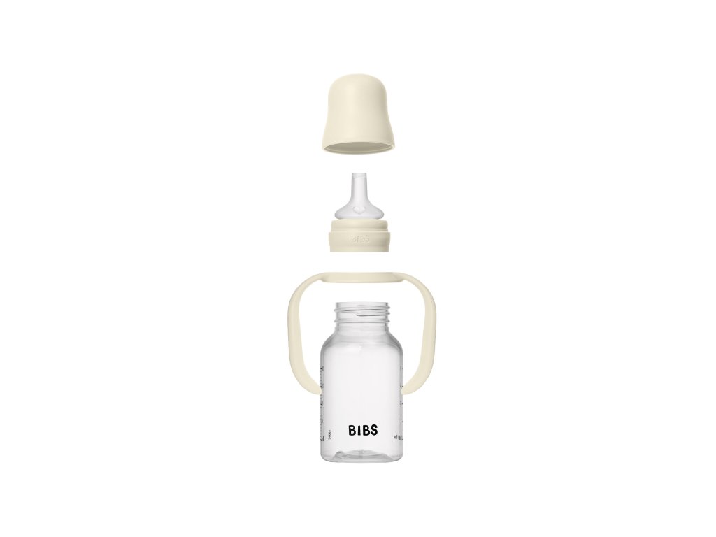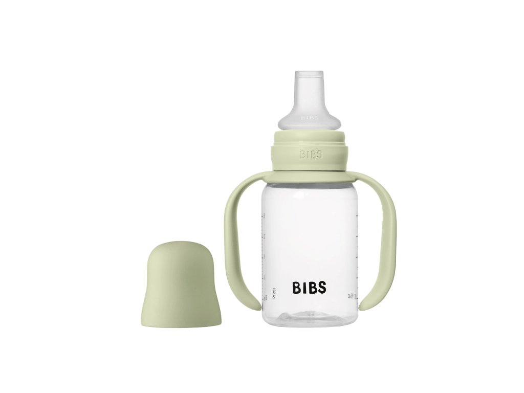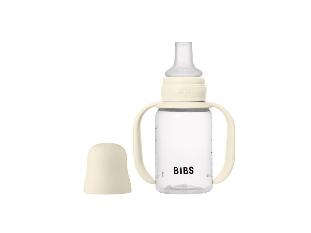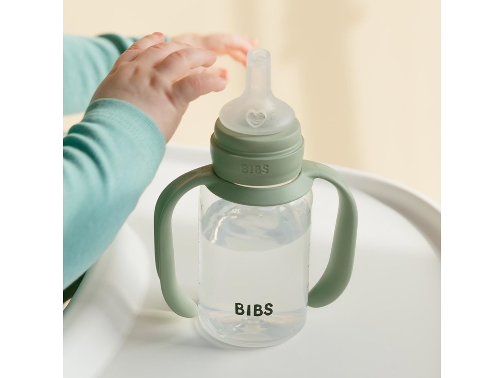 BIBS je obľúbená dánska značka s tradíciou výroby ikonických cumlíkov od roku 1978. Okrem cumlíkov BIBS ponúka aj pestrý prémiový sortiment pre najmenšie deti v minimalistickom škandinávskom dizajne a širokej farebnej palete. BIBS detská fľaša s náustkom slúži ako tréningový pohárik, pomáha pri prechode z používania dojčenskej fľaše k pitiu z otvoreného pohára. Praktické ušká uľahčujú deťom manipuláciu s fľašou, deti si tak rozvíjajú jemnú motoriku a samostatnosť pri pití. Mäkký silikónový náustok s membránou je jemný a šetrný k ďasnám a udržiava tekutý obsah bezpečne vo vnútri fľaše. Anti-Colic dizajn – unikátny antikolikový ventil v tvare srdiečka pomáha predchádzať plynatosti a podporuje plynulý tok tekutiny pre šťastnejšie brušká. Mäkký náustok z hypoalergénneho silikónu medicínskej kvality, s pridanými výstužami pre väčšiu odolnosť. Jednoduché a pohodlné uchopenie vďaka rúčkam / uškám na fľašu, protišmykový povrch. Všetky komponenty sú vyrobené bez BPA a ftalátov. Jednoduché čistenie – vhodné aj do umývačky riadu (okrem cumlíka). Vhodné pre deti vo veku od 6 mesiacov. Fľaša je kompatibilná aj s doplnkami a cumlíkmi dojčenských fliaš BIBS. OBSAH BALENIA: Plastová fľaša z potravinárskeho PP bez obsahu BPA a ftalátov – 150ml. Náustok z hypoalergénneho silikónu medicínskej kvality. Objímka. Vrchnák. Ušká na fľašu. POUŽITIE: Pred prvým použitím výrobok rozoberte a všetky časti sterilizujte vo vriacej vode po dobu 5 minút. Neskôr sterilizujte podľa potreby. Po každom použití výrobok rozoberte, všetky časti umyte a nechajte dôkladne vyschnúť. Všetky časti okrem silikónového náustku je možné umývať v umývačke riadu. V mikrovlnnej rúre je možné používať iba samotné telo fľaše. BIBS detská fľaša s náustkom spĺňa európsku normu EN 14350.Dodatočné parametre