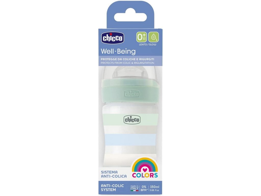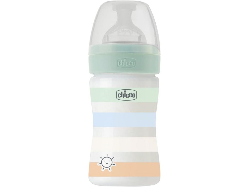 Dojčenské fľaše Chicco Well-being ponúkajú tú správnu fľašu pre každodennú potrebu dieťatka, aby pomohli mamičke a dieťatku vychutnať si pokojný zážitok z kŕmenia.Pomáhajú znižovať koliku, reflux, a tým podráždenosť dieťaťa. Silikónový cumlík Physio s povrchovou úpravou Soft Sense je extra mäkký a príjemný, vďaka čomu sa dieťa cíti prirodzene. Cumlíky na fľašu sú vymeniteľné – v 4 veľkostiach a viete ich prispôsobiť požiadavke dieťaťa: