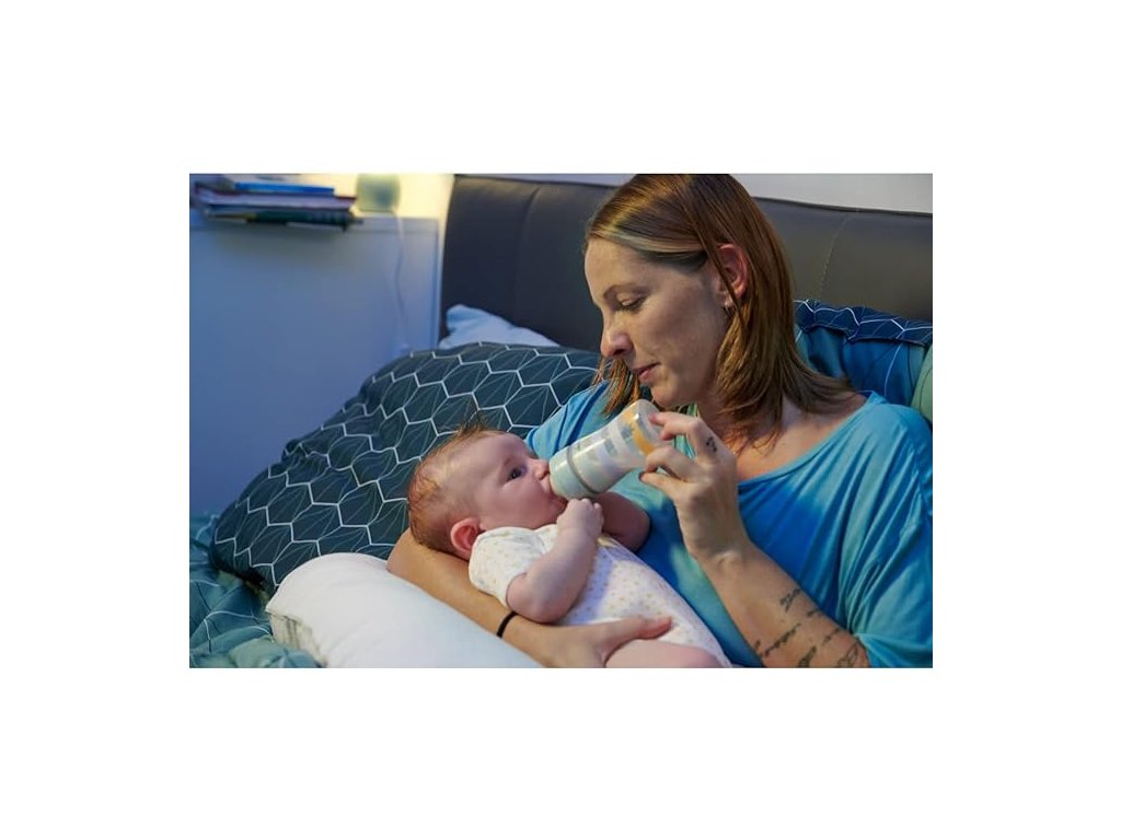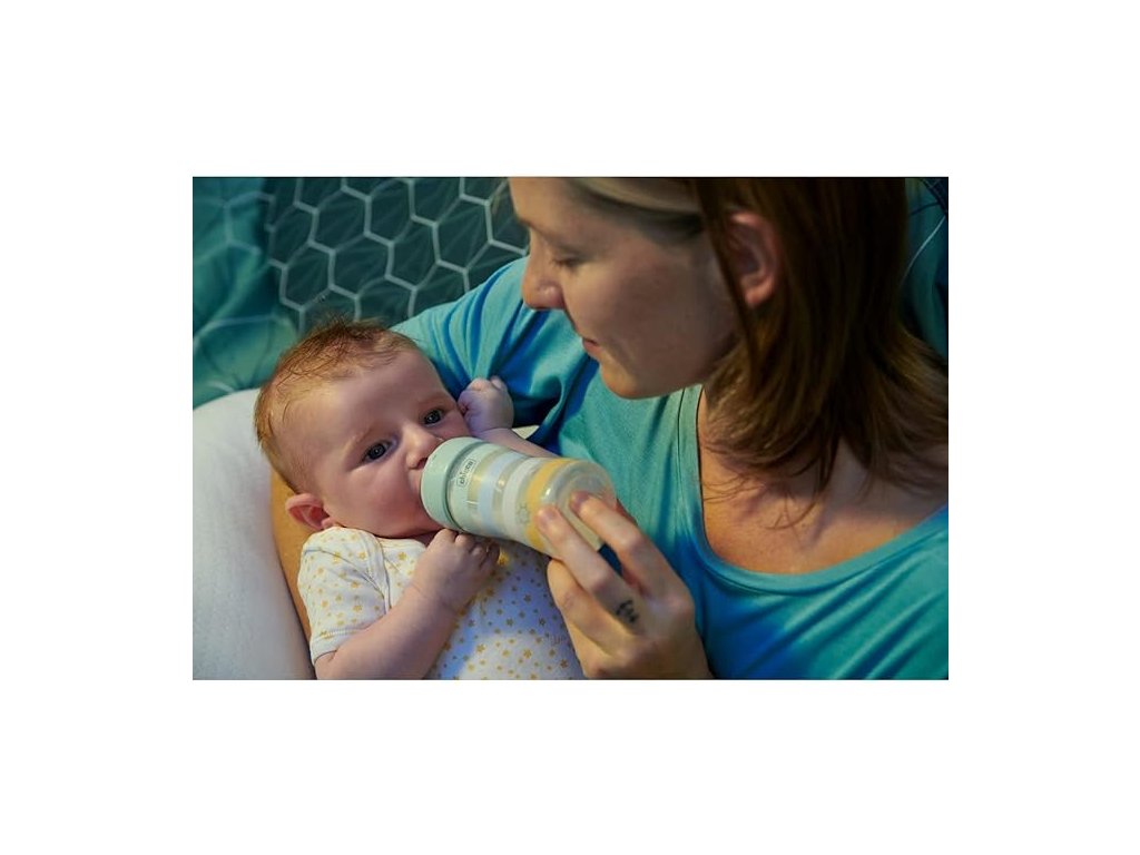 - Antikolikový ventil: antikolikový ventil na spodnej časti cumlíka umožňuje fľašiam zabrániť posunutiu cumlíka a nasávaniu vzduchu, čím sa predchádza kolike. Fľaša umožňuje hladké a pokojné kŕmenie.