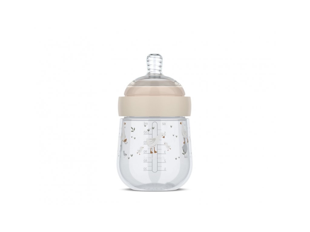 - Prirodzený tvar cumlíka z lekárskeho silikónu podporuje prirodzený spôsob kŕmenia a ľahký prechod medzi dojčením a fliaš