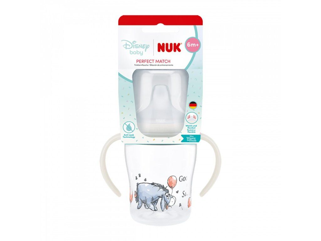 Dojčenská fľaša na učenie NUK Perfect Match s motívom Disney pomáha deťom prirodzene prejsť z dojčenskej fľaše na hrnček.
