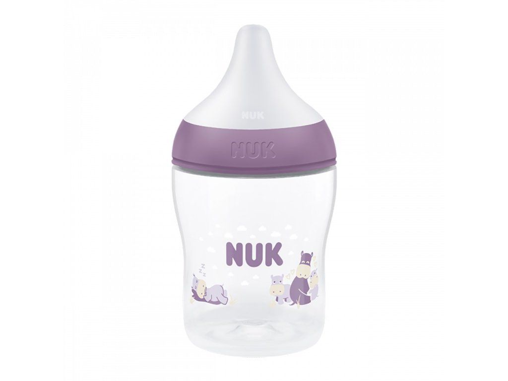 Dojčenská fľaša NUK Perfect Match s kontrolou teploty a mäkkým silikónovým cumlíkom. Špeciálny tvar typický pre cumlíky NUK s ortodontickým antikolikovým cumlíkom je modelovaný podľa materskej bradavky pri dojčení. Ponecháva dostatok priestoru pre prirodzené sacie pohyby jazyka aj čeľuste. Veľká, široká opora pier pri pití pripomína matkinu pokožku. Fľaša je navrhnutá tak, aby bábätko neprišlo do kontaktu s pevnými plastovými časťami. Vylepšený systém proti prehĺtaniu vzduchu pri pití Anti Colic Air System zabezpečuje prirodzený tok mlieka, aby dieťa pilo uvoľnene bez prehĺtania vzduchu. Hladko sa zužujúci tvar s antikolikovou funkciou pre plynulý a nerušený prietok pitia, veľkosť S (od narodenia, pre materské mlieko, čaj alebo vodu). Dojčenské fľaše sú teraz vybavené novým NUK kontrolným ukazovateľom teploty, ktorý pomáha zabrániť tomu, aby vaše dieťa pilo príliš horúci príkrm. Ukazovateľ vyzerá ako teplomer, je umiestnený medzi ryskami a teplota obsahu fľaše zmení jeho farbu. Ak je príkrm príliš horúci, modrý ukazovateľ sa zmení na biely. V ideálnom prípade by mal príkrm mať telesnú teplotu (37 °C), čo zodpovedá modrému zafarbeniu displeja. Vyrobená z vysoko kvalitného nerozbitného plastu polypropylénu a neobsahuje BPA (Bisfenol A). Obsah fľaše 150 ml. Vhodná pre deti od narodenia, veľkosť S (malý otvor = pre materské mlieko, vodu, čaj). Klinicky testované.Charakteristika: