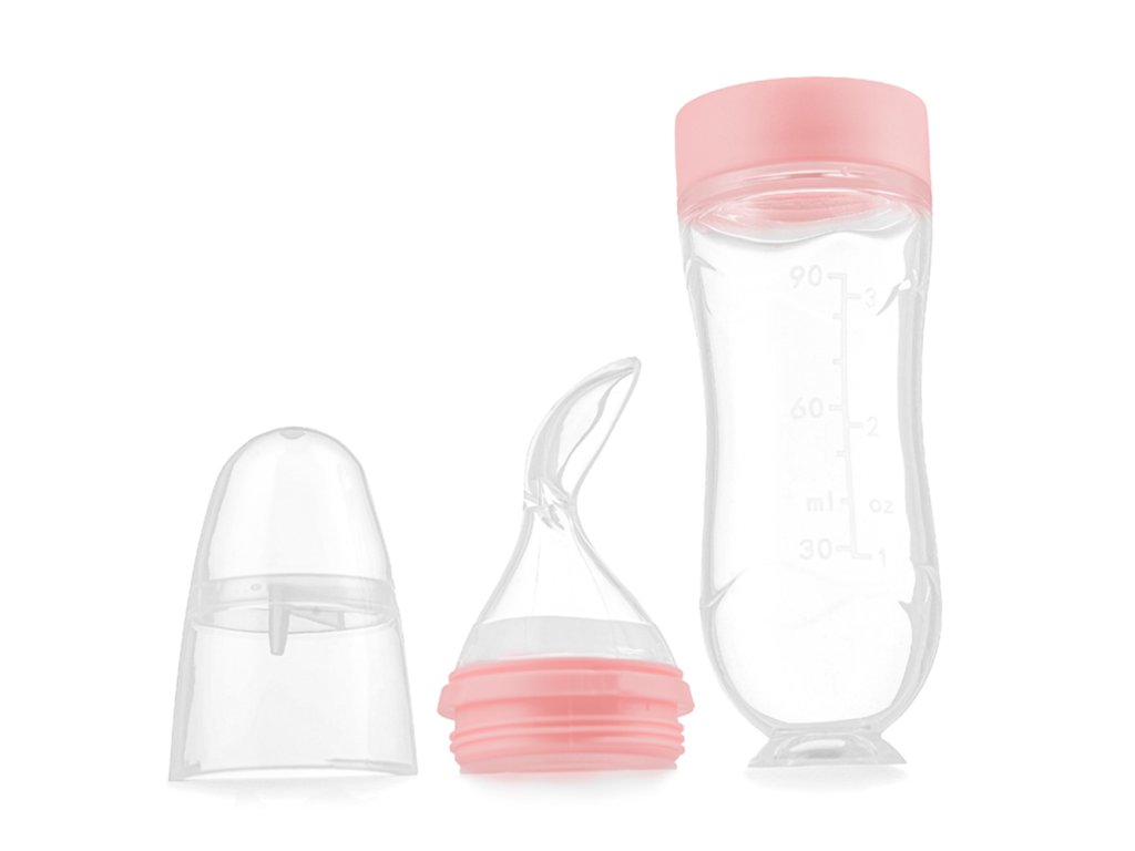Kidnort Silikónová fľaštička s lyžičkou Retter ružová