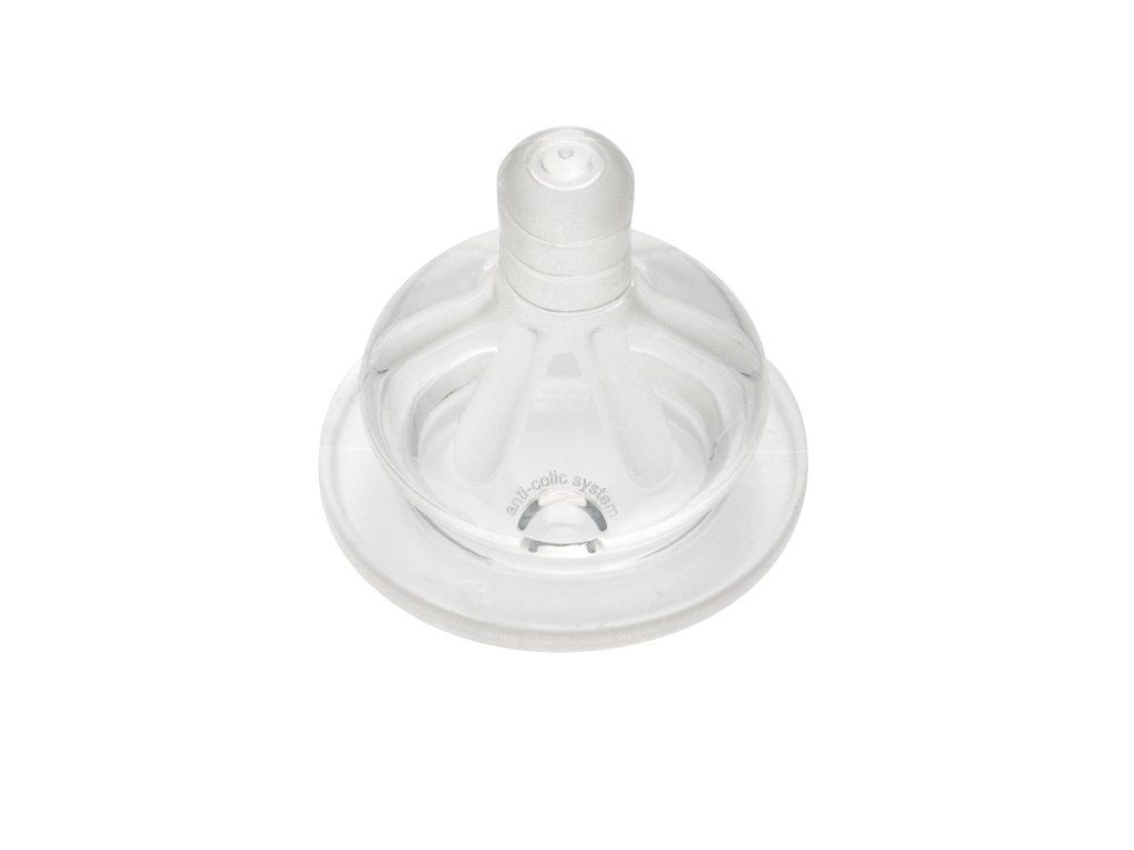 Mäkký širokohrdlá cumlík dokonale vyhovuje podnebiu dieťaťa a je prispôsobený prirodzenému sania dieťaťa.