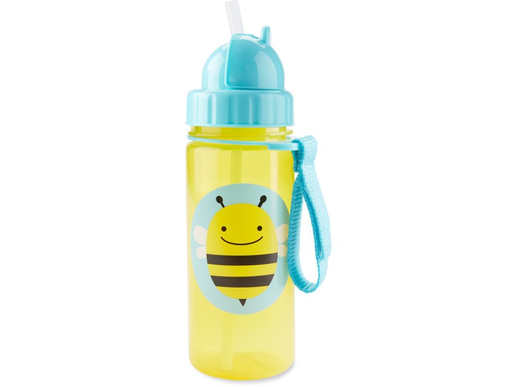 Krásna a praktická fľaštička z kolekcie ZOO, so slamkou, zatváracím viečkom, praktickým pásikom na suchý zips.Vlastnosti: