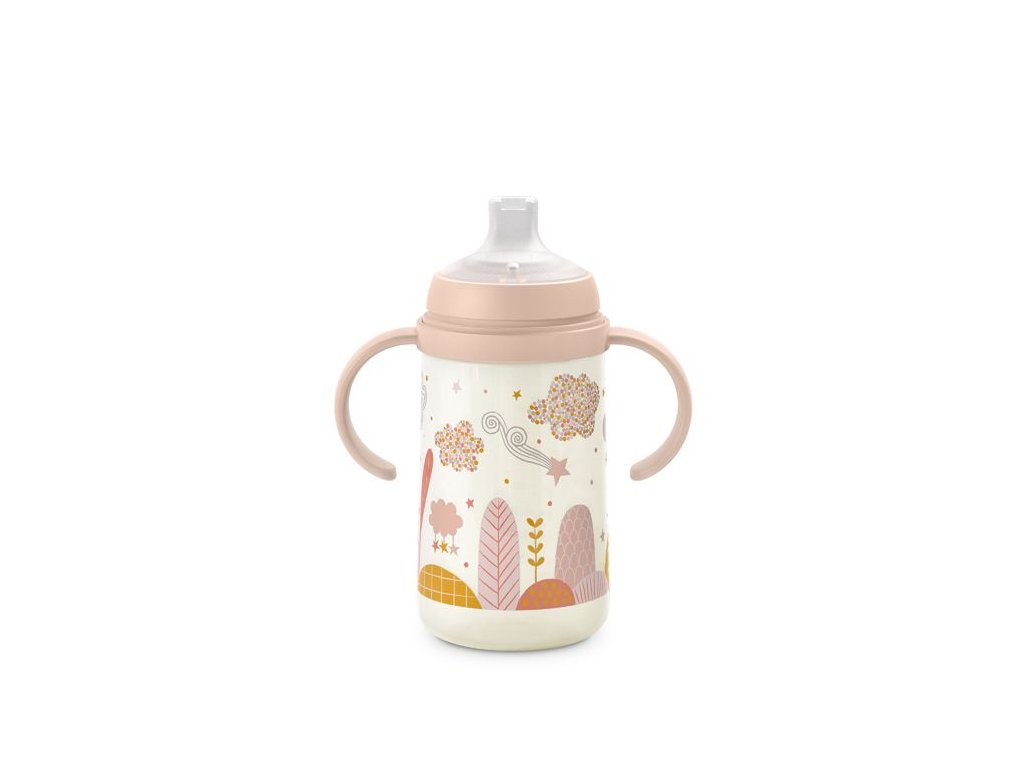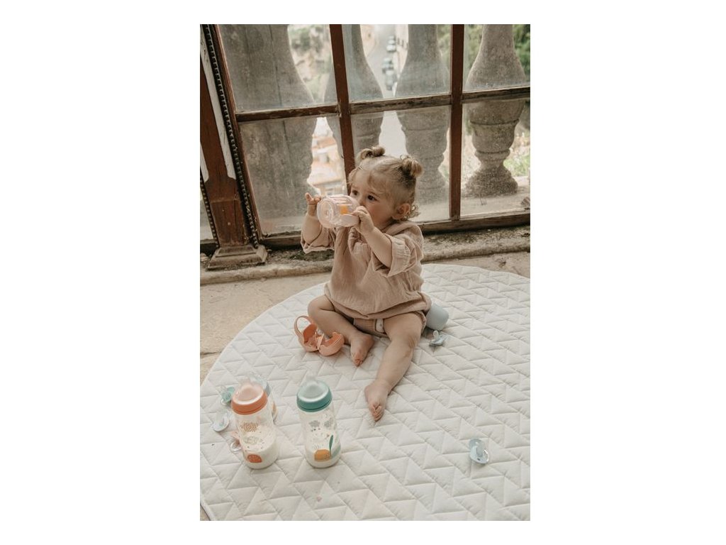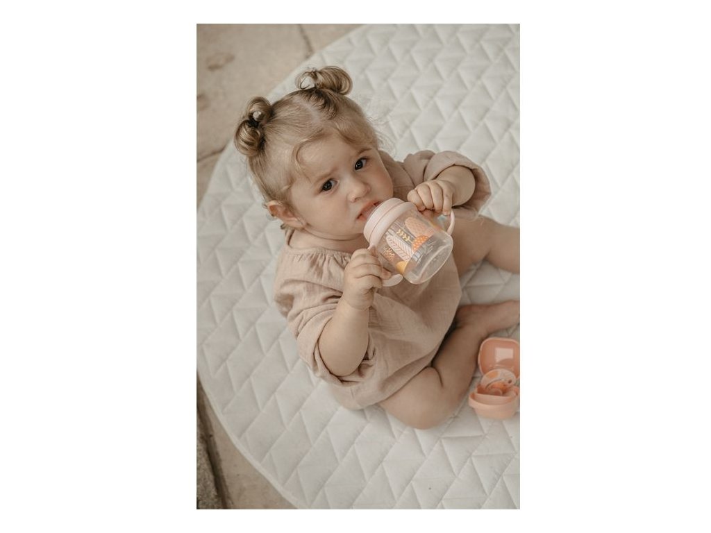Druhá fľaša s uškami so špeciálnym SX ProTM antikolikovým cumlíkom uľahčuje prechod z dojčenskej fľaše na pitie z hrnčeka či pohára. Silikónový náustok je mäkké a materiálovo zhodné s cumlíky dojčenských fliaš a cumlíkov SX ProTM . Preto ho Vaše deti prijmú rýchlejšie ako bežný tvrdý náustok.