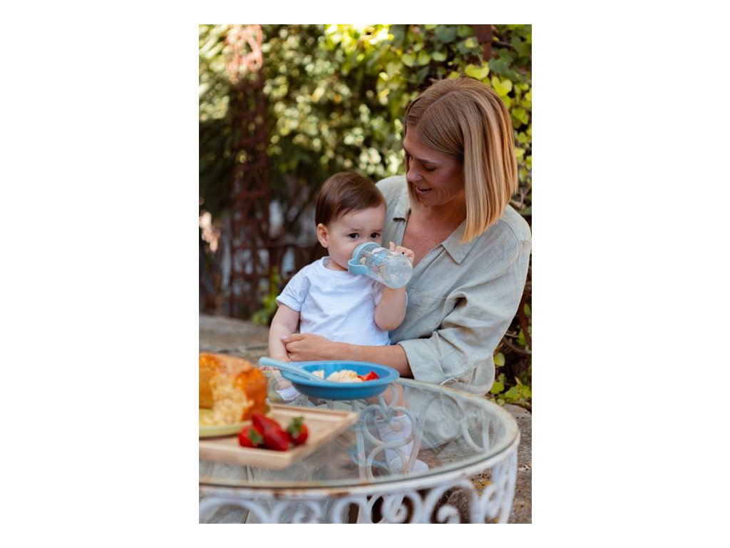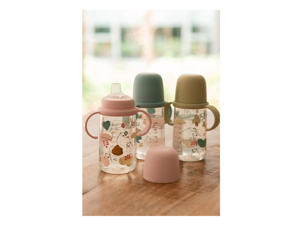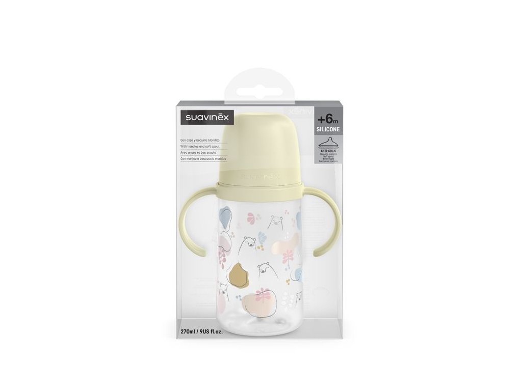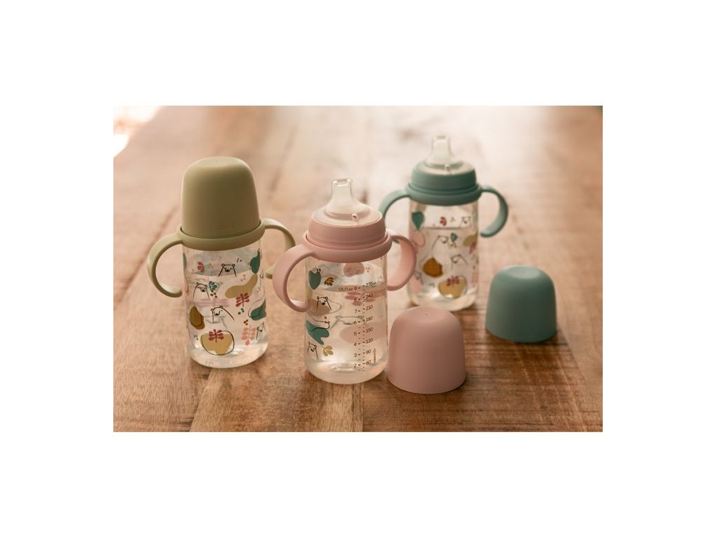 Druhá fľaša s uškami so špeciálnym SX ProTM antikolikovým cumlíkom uľahčuje prechod z dojčenskej fľaše na pitie z hrnčeka či pohára. Silikónový náustok je mäkké a materiálovo zhodné s cumlíky dojčenských fliaš a cumlíkov SX ProTM . Preto ho Vaše deti prijmú rýchlejšie ako bežný tvrdý náustok.