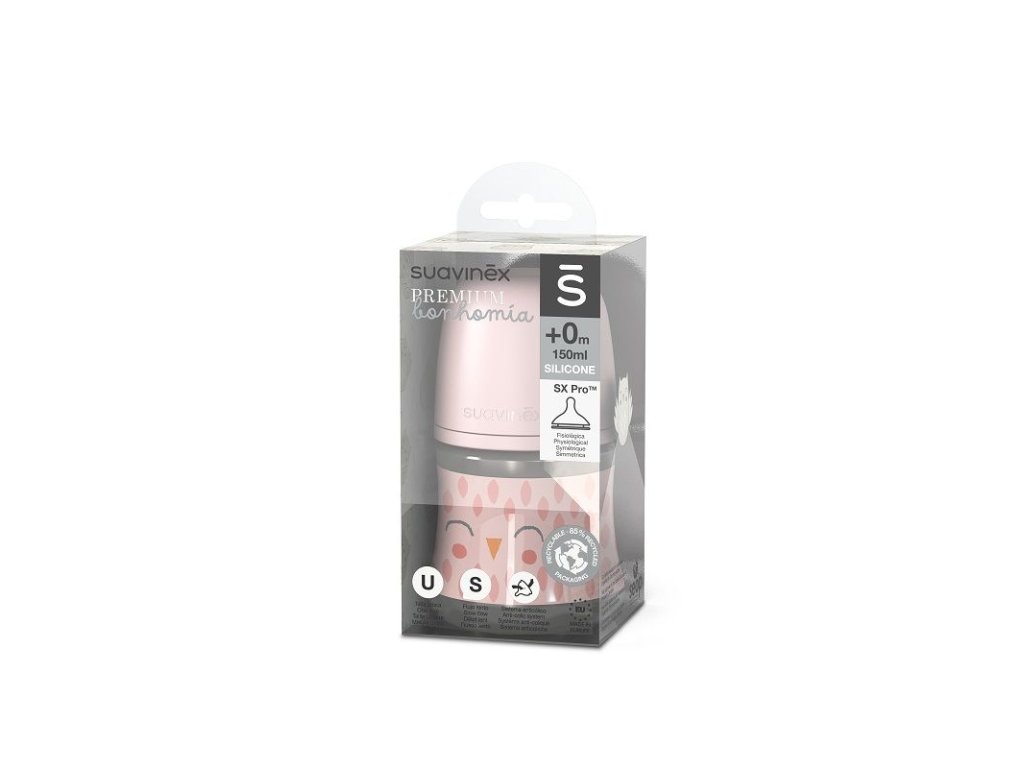 SUAVINEX | Fľaša BONHOMIA 150 ml fyziologická SX PRO +0 SF - ružová