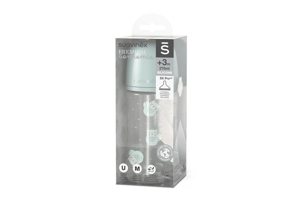 SUAVINEX | Fľaša BONHOMIA 270 ml fyziologická SX PRO +3 MF - zelená