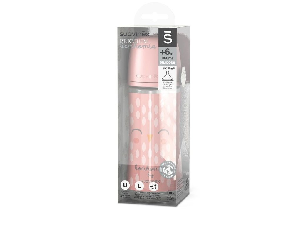 SUAVINEX | Fľaša BONHOMIA 360 ml fyziologická SX PRO +6 LF - ružová